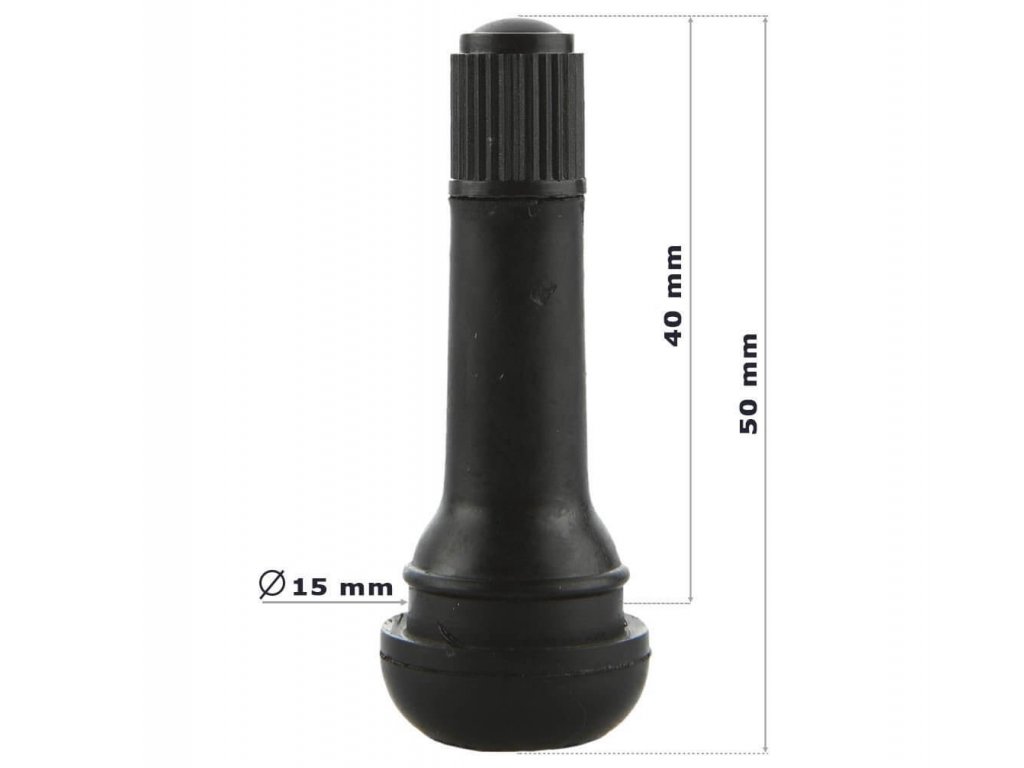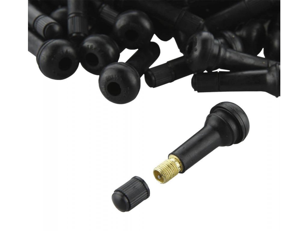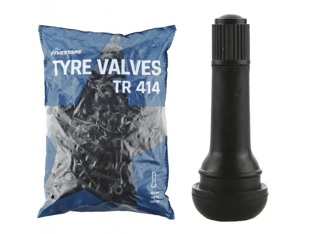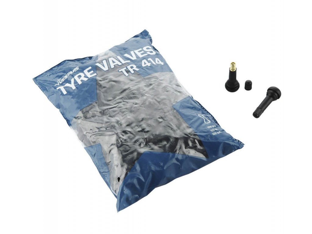 Gumový ventil pre bezdušové kolesá TR 414 v sade 100 ks. Používa sa na väčšinu oceľových a hliníkových ráfikov.
