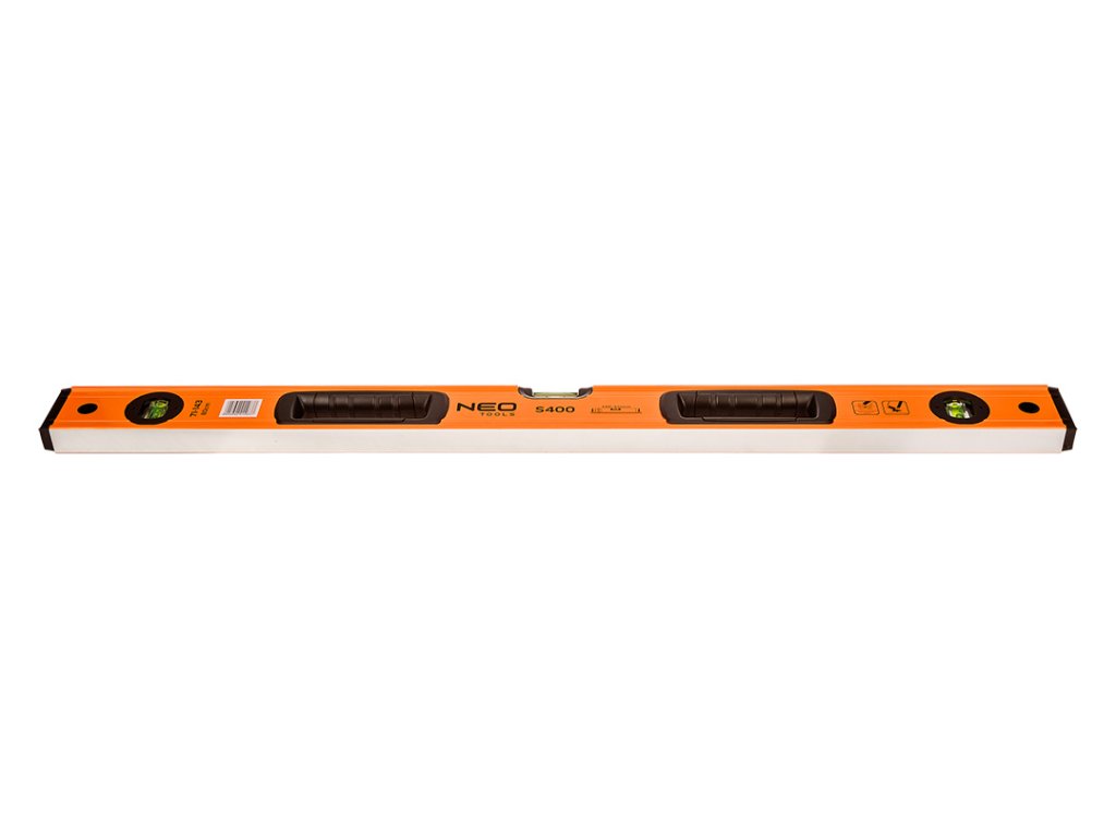 Hliníková vodováha S 400, 3 libely, 2 rukoväte, 80 cm 71-143 od spoločnosti NEO TOOLS je špičkový merací prístroj so zabudovanými tromi trubkovými libelami, ktorý využíva silu zemskej gravitácie na určenie vodorovných, zvislých alebo iných uhlov k rovinám v konštrukcii. Ponúkaný model má hrúbku profilu 1,2 mm. Presnosť vodováhy je stanovená na 0,029° = 0,5 mm/m. Nástroj je vyrobený z ľahkého, ale odolného hliníka. Konštrukcia je vybavená 2 krytkami proti nárazom a pogumovanými koncami. Pohodlné dve rukoväte sa bezpečne držia v rukách. Vodováhu NEO TOOLS odporúčame pre profesionálov a domácich majstrov.