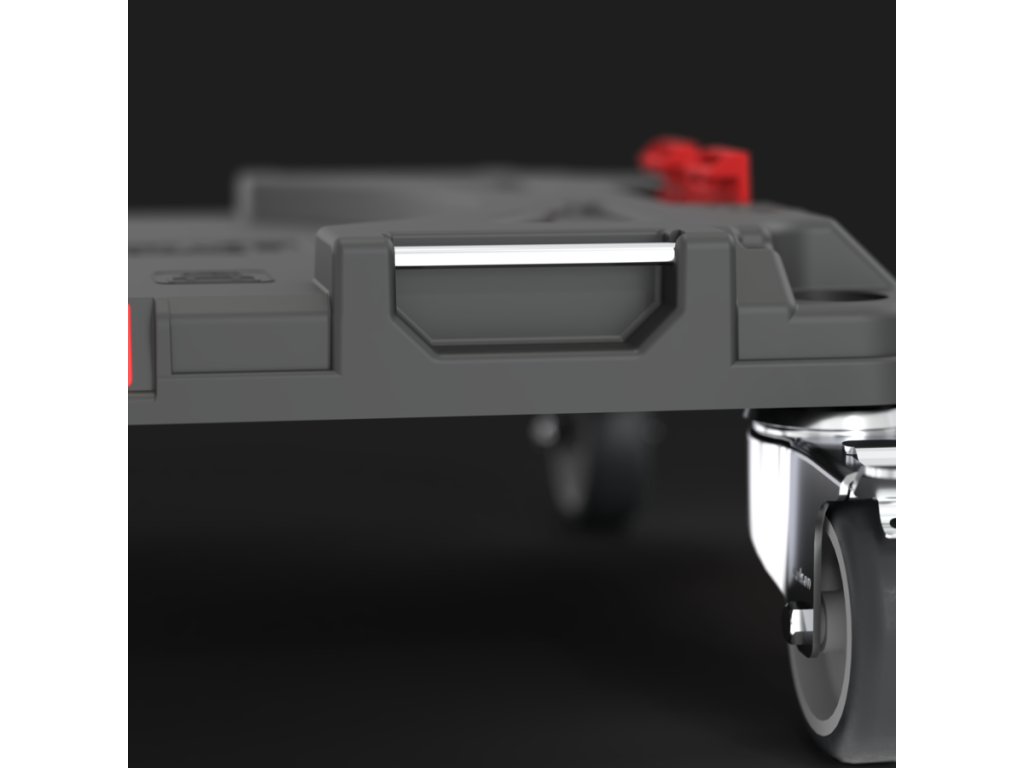 Transportná platforma Qbrick System PRO je ideálnym mobilným základom na rozšírenie dielenských zostáv – či už v dielni, garáži, alebo domácich podmienkach. Je vybavená štyrmi otočnými kolieskami, z toho dve s brzdou, a hliníkovými úchytmi na uchytenie fixačných popruhov.