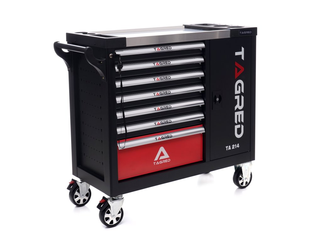 Udržuje poriadok na pracovisku a chráni náradie pred krádežou (vozíky sú uzamykateľné na kľúč). Skrinka má ergonomickú rukoväť integrovanú do bočnej steny, pevne pripevnenú, čo uľahčuje transport. Plne výsuvné zásuvky na ložiskách. Centrálny zámok s dvoma kľúčmi zamyká všetky zásuvky a dva kľúče od úložného priestoru. Je vybavený 4 kolieskami, z toho 2 otočnými, ktoré uľahčujú manipuláciu so skriňou. čo veľmi uľahčuje prepravu. Dodatočne má rohy s nárazníkmi (chránia pred náhodným poškodením, napr. karosérie auta). Doska z leteckého hliníka! Je univerzálne perforovaná. Súčasťou súpravy je prázdny dvojposchodový úložný priestor uzamykateľný na kľúč. Súčasťou súpravy sú ploché kľúče a kľúče typu L. Ráčny mechanizmus je vyrobený z chróm-vanádovej ocele CrV6140. Ráčny sú vybavené systémom QUICK RELASE a mechanizmom s 72 zubami. Skrinka je nová, nikdy nepoužitá.