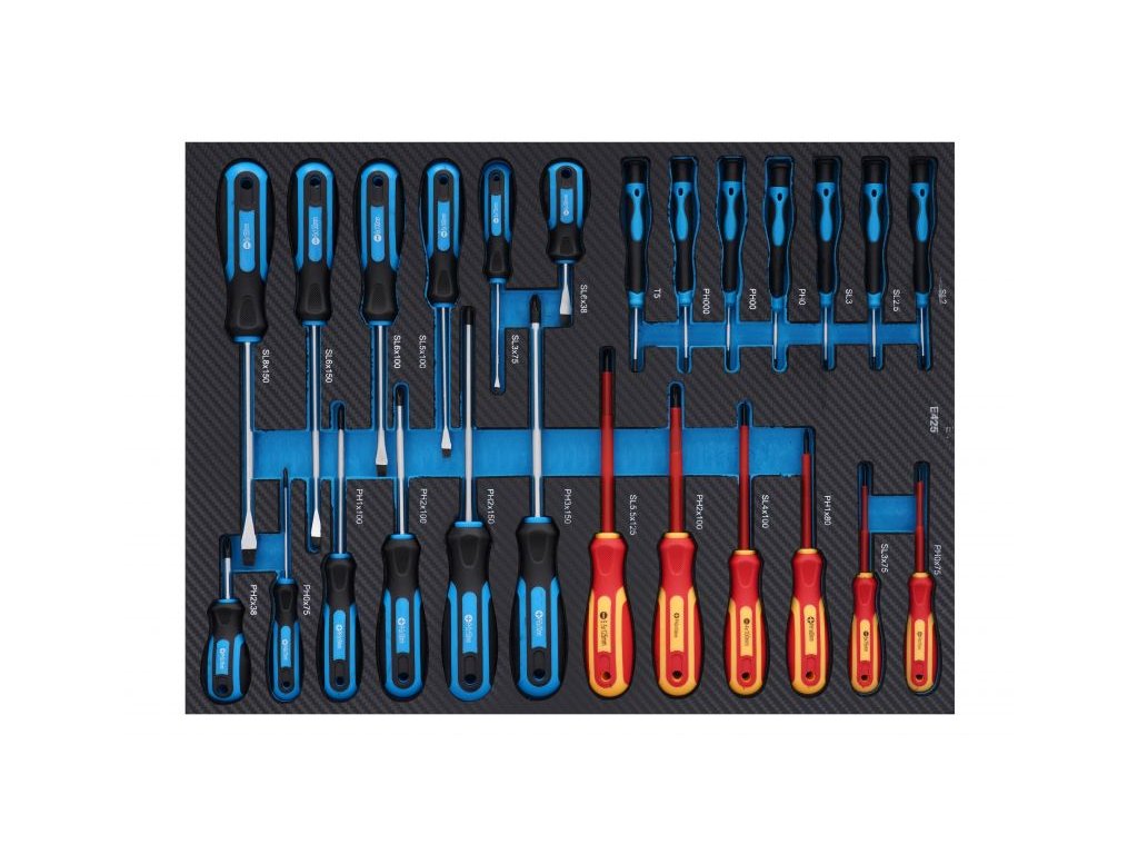 - Izolované skrutkovače (6 kusov): SL3*75mm; SL4 * 100 mm; SL5,5 * 125 mm; PH0*75mm;PH1*100mm;PH2*100mm