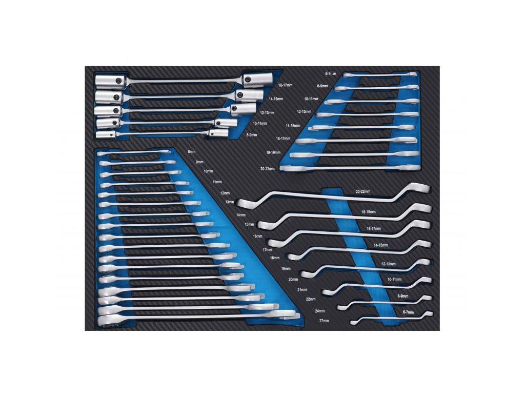 - Kombinovaný kľúč (17 kusov): 8;9;10;11;12;13;14;15;16;17;18;19;20;21;22;24;27 mm