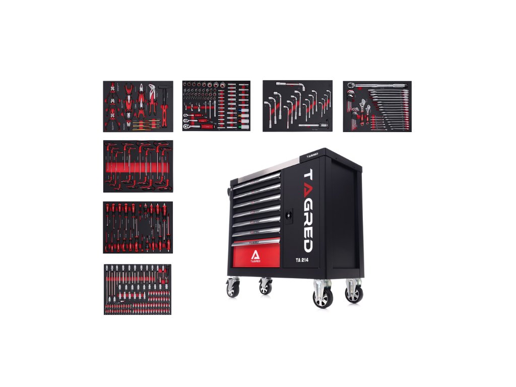 Udržuje poriadok na pracovisku a chráni náradie pred krádežou (vozíky sú uzamykateľné na kľúč). Skrinka má ergonomickú rukoväť integrovanú do bočnej steny, pevne pripevnenú, čo uľahčuje transport. Plne výsuvné zásuvky na ložiskách. Centrálny zámok s dvoma kľúčmi zamyká všetky zásuvky a dva kľúče od úložného priestoru. Je vybavený 4 kolieskami, z toho 2 otočnými, ktoré uľahčujú manipuláciu so skriňou. čo veľmi uľahčuje prepravu. Dodatočne má rohy s nárazníkmi (chránia pred náhodným poškodením, napr. karosérie auta). Doska z leteckého hliníka! Je univerzálne perforovaná. Súčasťou súpravy je prázdny dvojposchodový úložný priestor uzamykateľný na kľúč. Súčasťou súpravy sú ploché kľúče a kľúče typu L. Ráčny mechanizmus je vyrobený z chróm-vanádovej ocele CrV6140. Ráčny sú vybavené systémom QUICK RELASE a mechanizmom s 72 zubami. Skrinka je nová, nikdy nepoužitá.