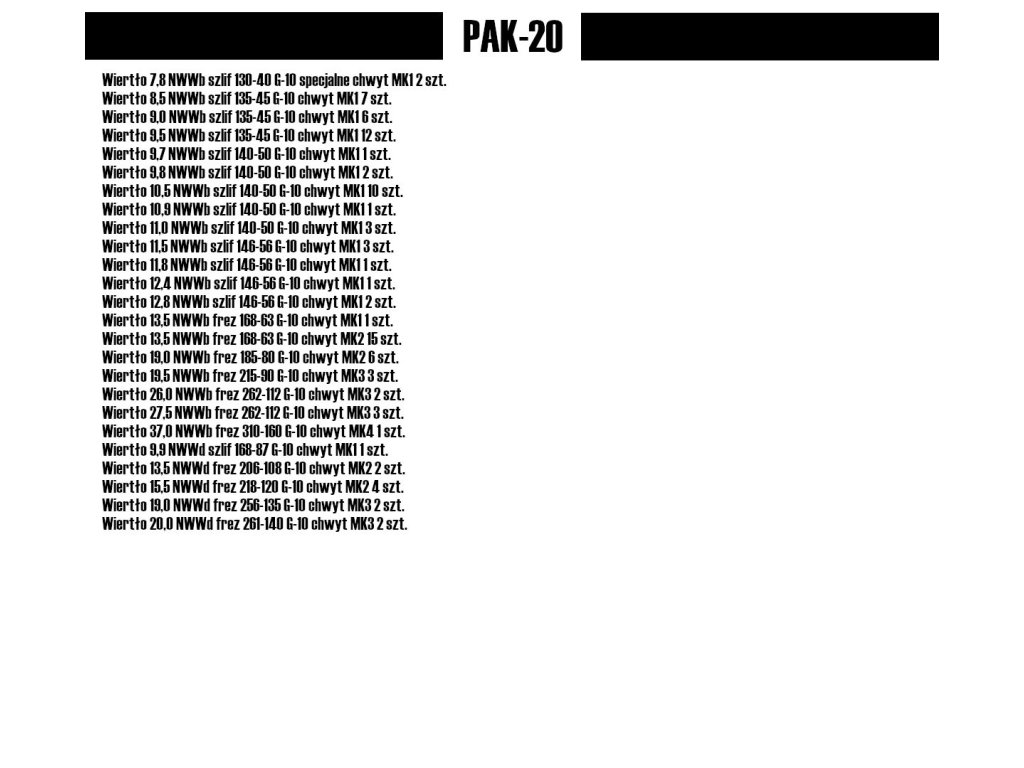 Balík vrtákov PAK-20 NWWd, NWWb PAK-20