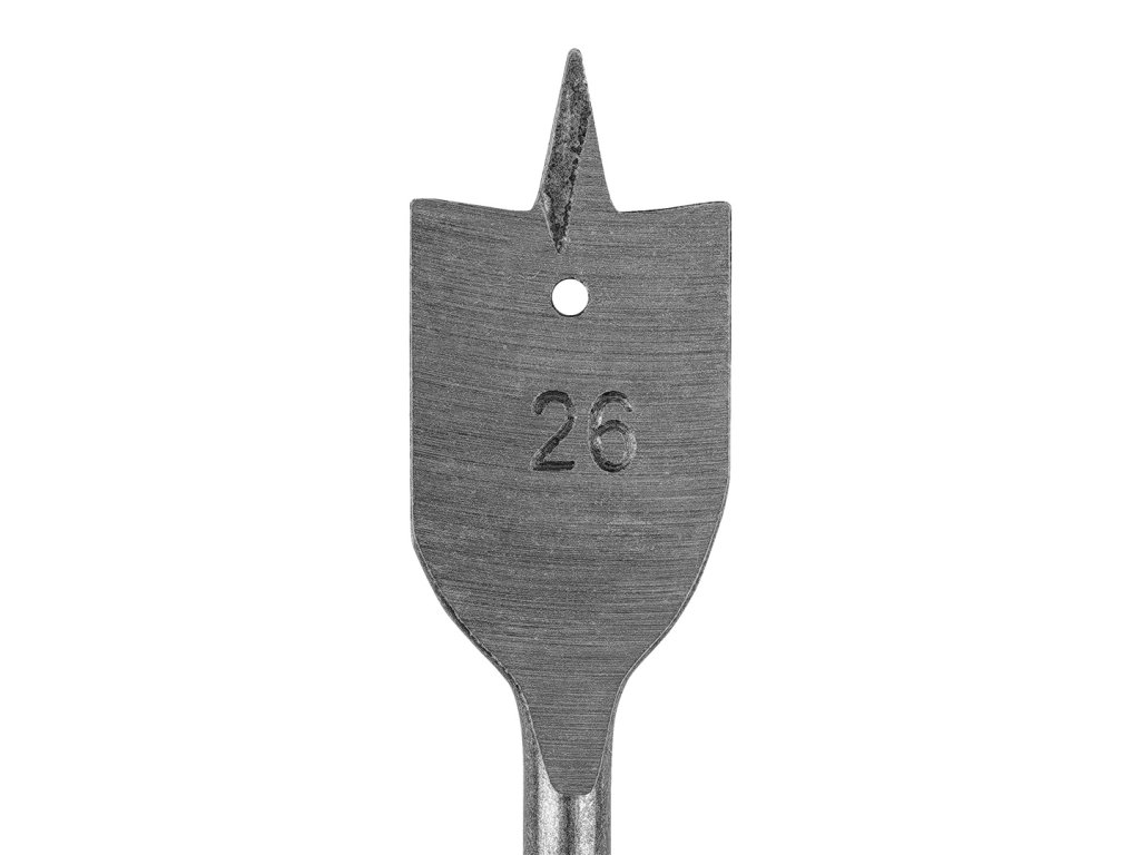 Čepeľový vrták do dreva. Priemer 26 mm. Dĺžka 152 mm. Stopka HEX. Maximálne otáčky 1750 ot/min. Použitie: drevo, preglejka.