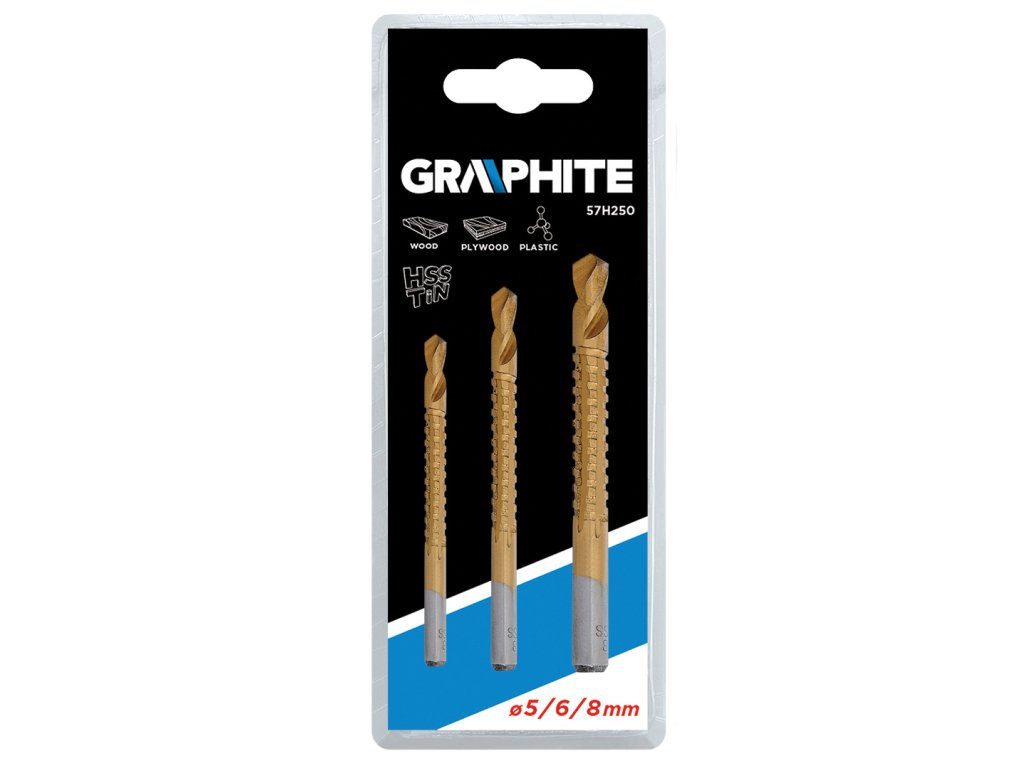 Vrtáky-píly rýchlosti pásu ocele potiahnutej nitridom titánu GRAPHITE (ref. č. 57H250). Vďaka špeciálnemu frézovaniu bočných plôch, vrtáky umožňujú vŕtať a frézovať nepravidelné otvory v tenkých plastoch, dreve, kove. Ideálne pre vlastné montážne práce a prácu v dielní.