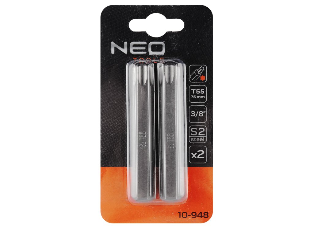 Drážkovaný bit T55 x 75 mm dĺžka. Bit je vyrobený z vysoko kvalitnej legovanej ocele S2. 25-ročná záruka výrobcu potvrdzuje vysokú kvalitu náradia. Značka NEO spĺňa očakávania profesionálov.