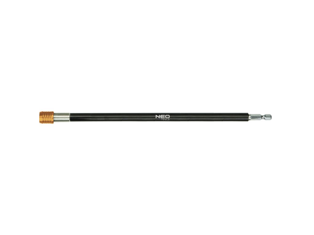 NEO 1/4" držiak bitov (ref. 06-073), 300 mm dlhý, magnetický. Je vyrobená z odolnej chróm-vanádiovej ocele. Kvalitu nástroja potvrdzuje certifikát TÜV a 25-ročná záruka výrobcu. Značka NEO spĺňa očakávania profesionálov.
