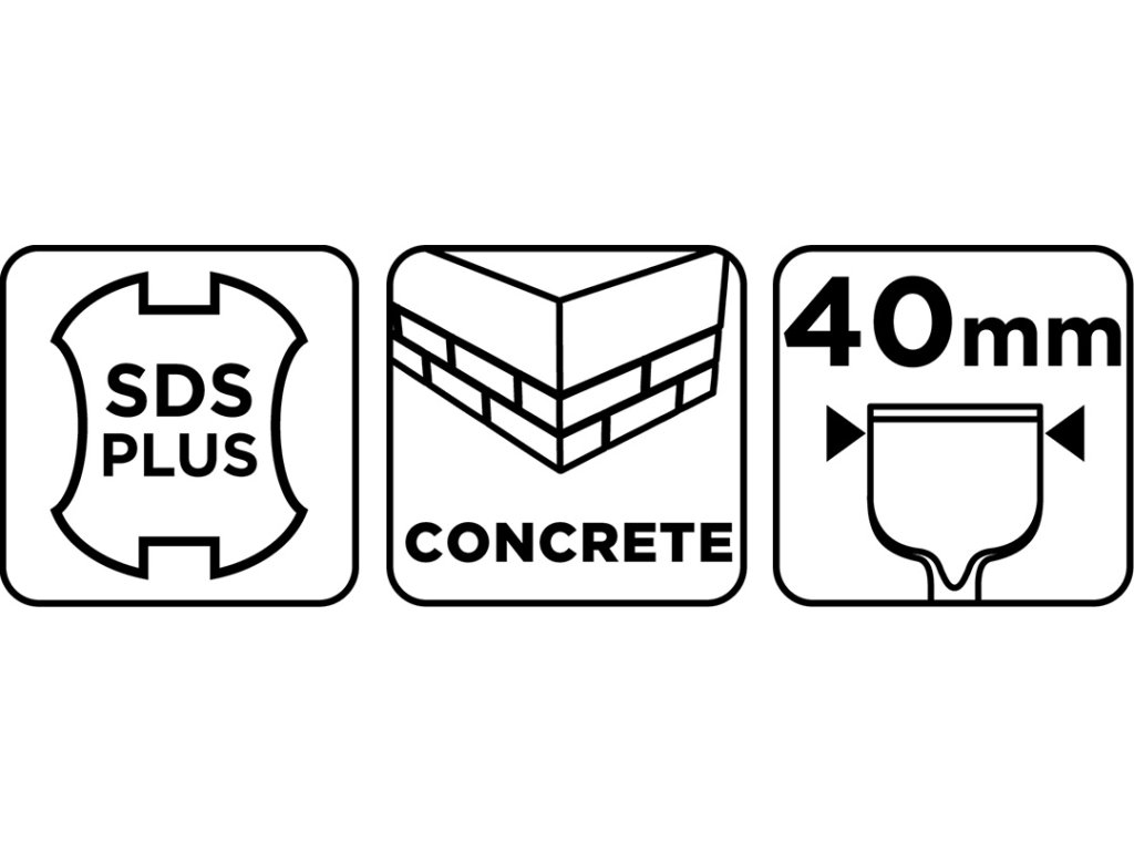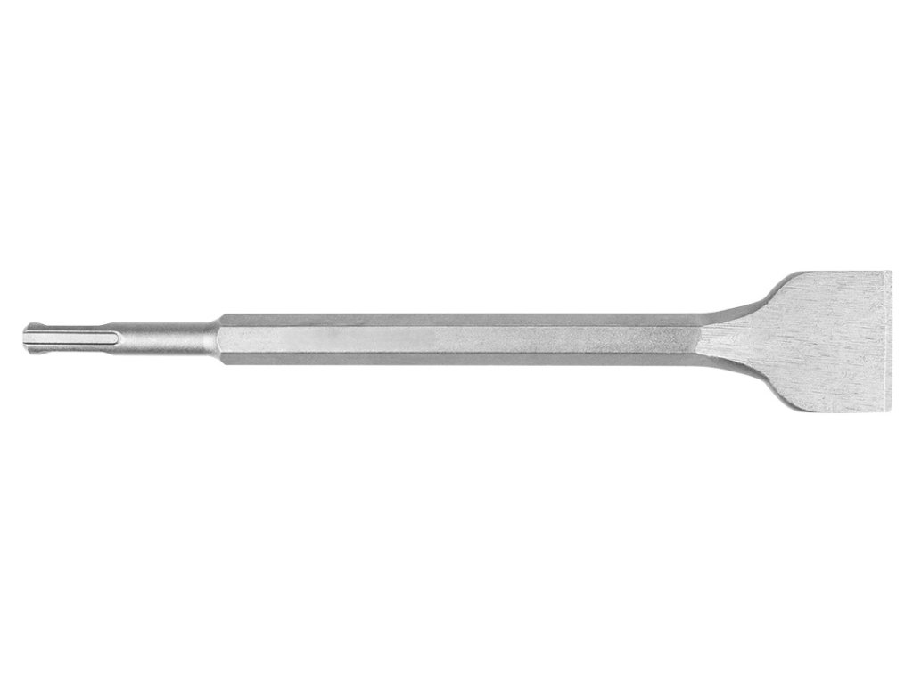Plochý sekáč, rukoväť SDS Plus. Priemer 14 mm, celková dĺžka 250 mm, šírka pracovnej časti 40 mm, dĺžka pracovnej časti 40 mm, použitie: na betón.