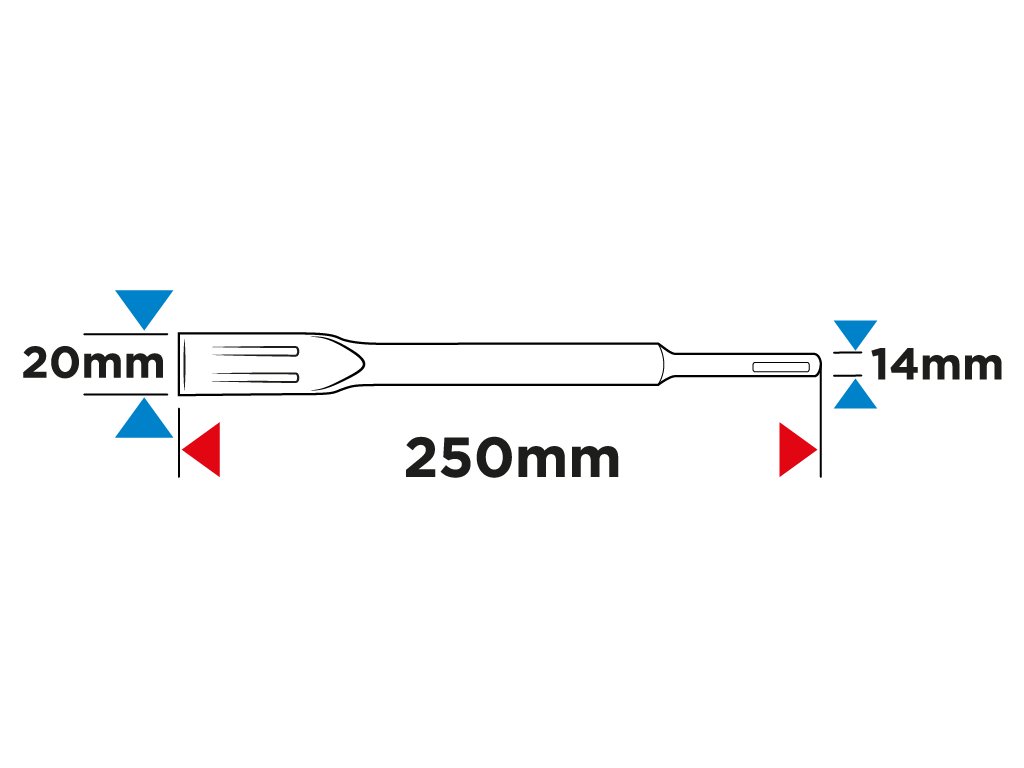 Plochý sekáč SDS Plus, šírka 20 mm, priemer stopky 14 mm, dĺžka 250 mm