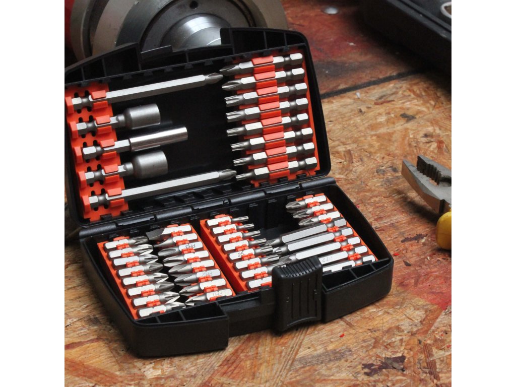 Profesionálna sada bitov na skrutkovače. V kufríku sa nachádza 45 kusov.