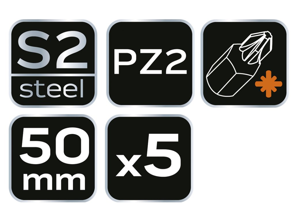 Rázové bity S2, 50 mm, PZ2 - 5 kusov. 09-579