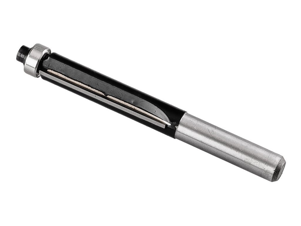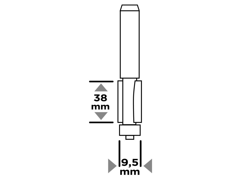 Rovný frézovací vrták do dreva s ložiskom, obojstranný, čepeľ z karbidu volfrámu (TCT), priemer stopky 8 mm, priemer čepele 9,5 mm, výška čepele 38 mm, celková dĺžka 84 mm, použitie drevo,