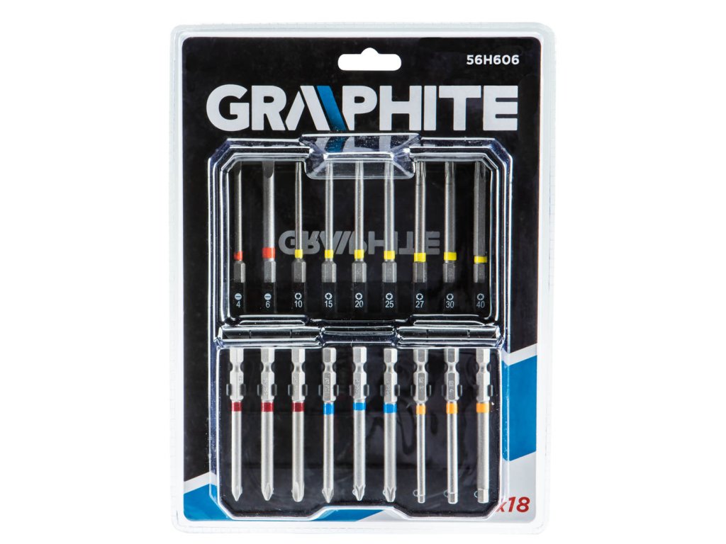 Súprava špeciálne predĺžených nástavcov GRAPHITE (ref. č. 56H606), ideálne na montážne práce na ťažko dostupných miestach – skrutkovanie nábytku
