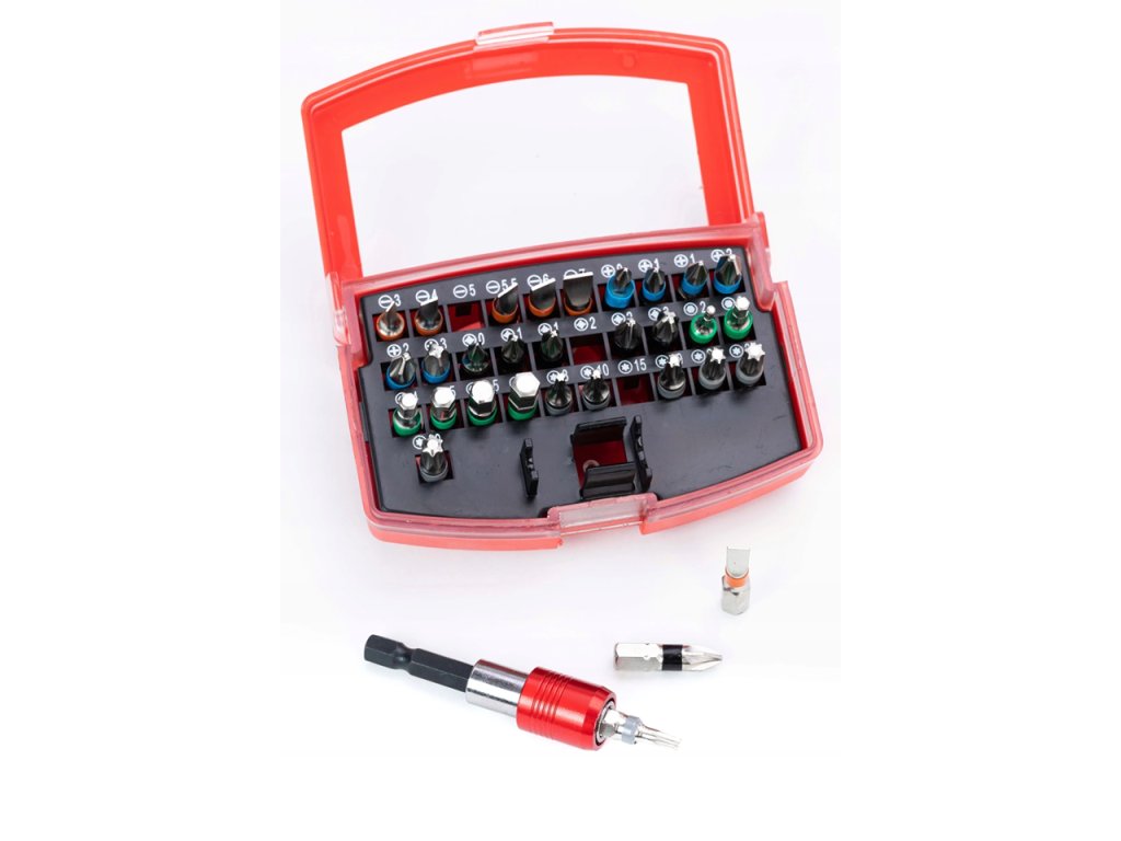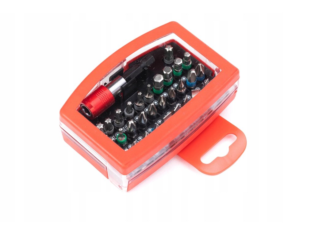 Súprava bitov vyrobená z chróm-vanádiovej ocele sa vyznačuje vysokou odolnosťou a odolnosťou proti oderu. Bity majú dĺžku 25 mm. Ideálne pre dielne, ako aj pre domáce garáže. Použitie farebných špičiek pre jednoduchšie rozlíšenie je najlepším riešením. Rozmanitosť sady vám umožní vybrať správny bit podľa vlastných potrieb. Sada je v praktickom boxe. Uzavretie boxu chráni svorky a držiak proti vypadnutiu.