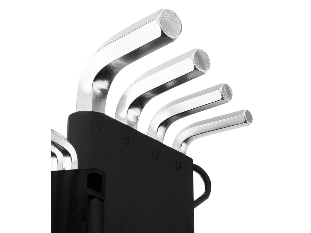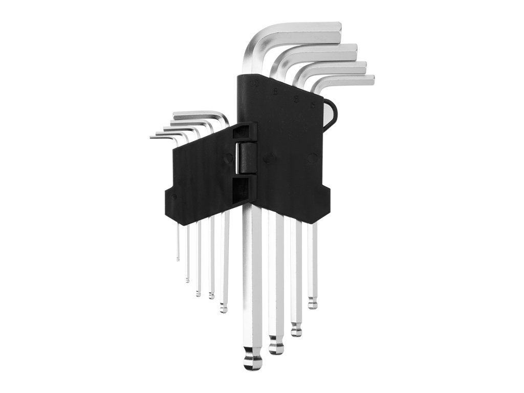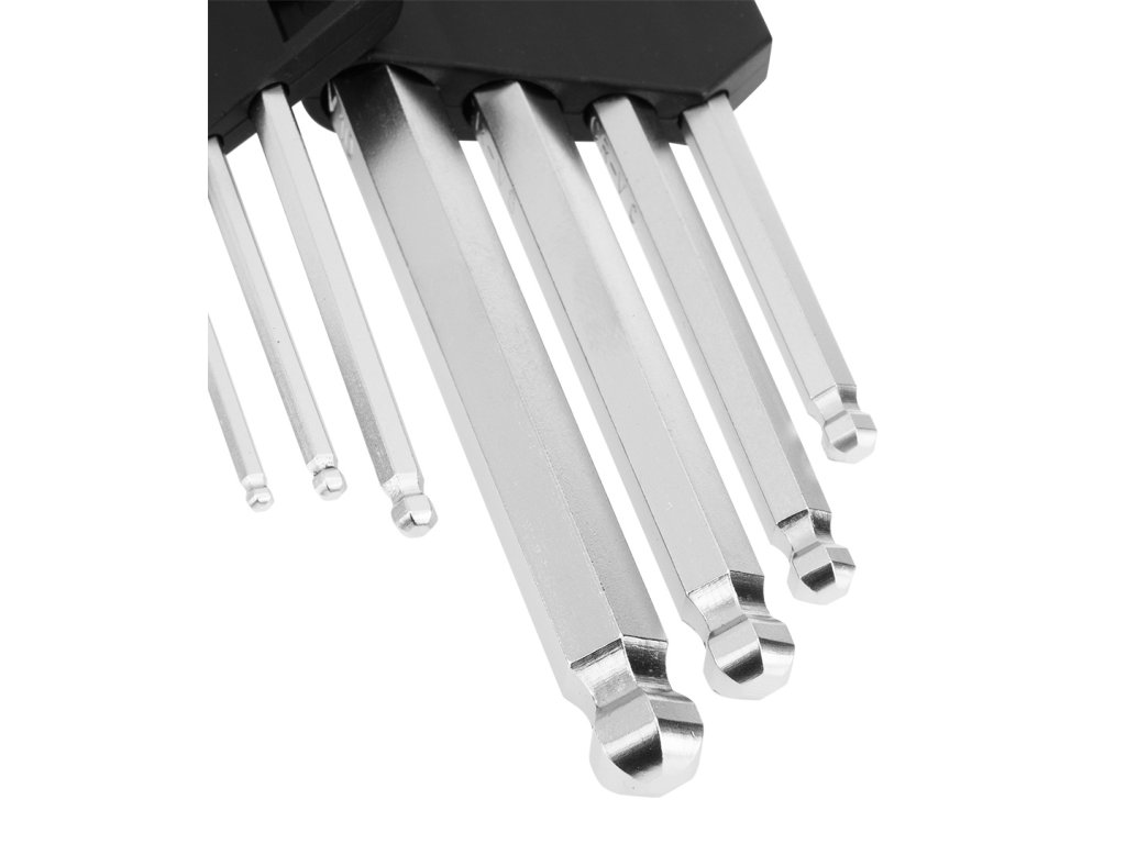 Šesťhranné kľúče 1,5-10 mm, sada 9 kusov, dlhé, 30° guľové hroty, CrV oceľ, veľkosti: 1,5, 2, 2,5, 3, 4, 5, 6, 8, 10 mm