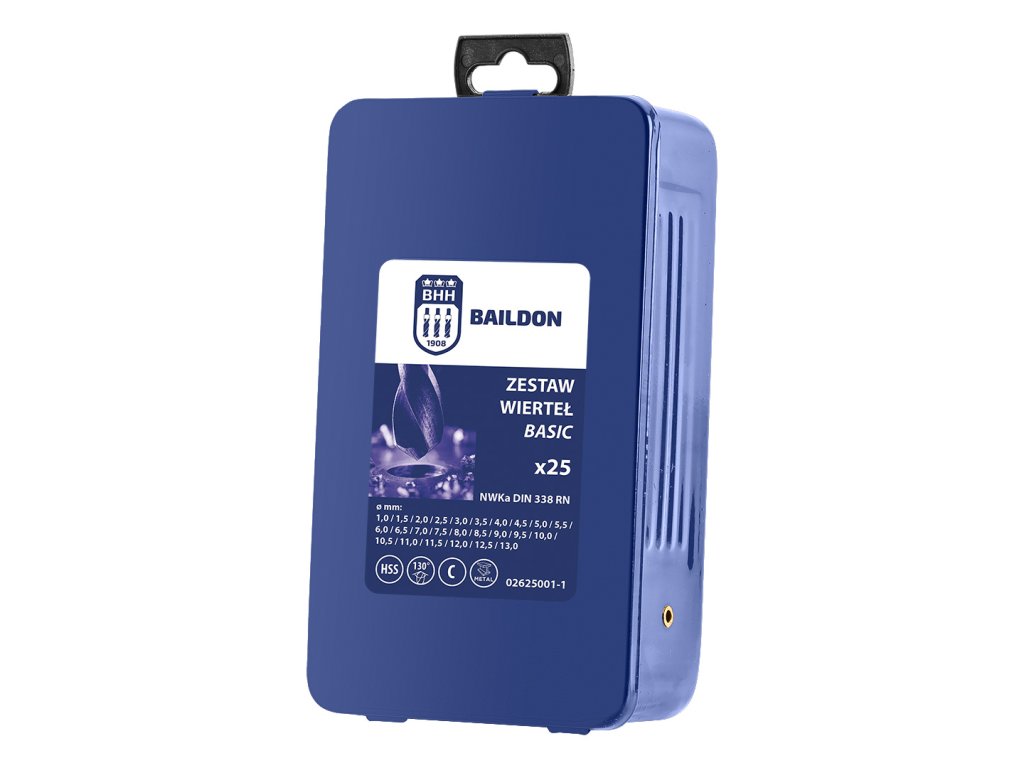 Sada vrtákov do ocele a liatiny NKWa Basic M-25, 1,0 - 13,0 mm, brúsené, HSS (25 kusov) 02625001-1 od spoločnosti BAILDON sú vyrobené z odolnej zliatiny HSS-G a zodpovedajú norme DIN 338 RN na všeobecné použitie. Súprava obsahuje 25 kusov nástrojov s priemerom od 1 do 13 mm. Výroba vrtákov je založená na metóde brúsenia - tým sa zvyšuje hladkosť pracovného povrchu vrtáka, čo prispieva k účinnému odvodu triesok a znižuje riziko prehriatia. Nástroje sú určené na použitie v rôznych elektrických nástrojoch, ako sú vŕtačky a skrutkovače, ako aj v tradičných a CNC obrábacích strojoch, a sú vynikajúce na vŕtanie otvorov do širokej škály materiálov vrátane rôznych druhov ocele, liatiny, vybraných zliatin medi a titánu. Súprava vrtákov BAILDON sa vyznačuje presnosťou a zvýšenou odolnosťou proti opotrebovaniu a dlhšou životnosťou. Špeciálne ostrenie (130°; korekcia ostria typu "C") je ideálne pre náročné materiály. Vďaka tomuto typu použitých výrobných postupov umožňujú vrtáky rýchlejšiu prácu a menší tlak. Vyznačujú sa lepším centrovaním a majú menšiu náchylnosť ostria na bočné nárazy. Vrtáky BAILDON do ocele a liatiny sú ponúkané v praktickej kovovej škatuli. Dlhá životnosť a spoľahlivosť týchto nástrojov je výsledkom komplexného procesu kontroly kvality a rozsiahlych inžinierskych skúseností v oblasti konštrukcie vrtákov.