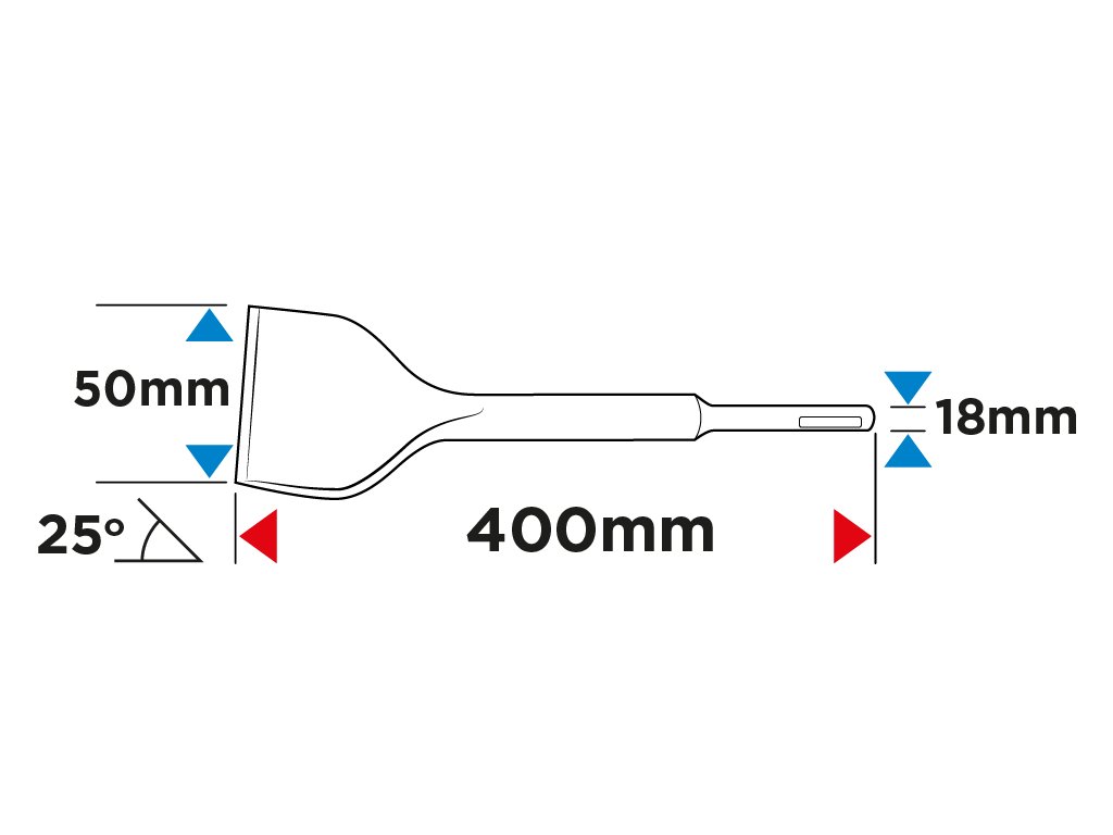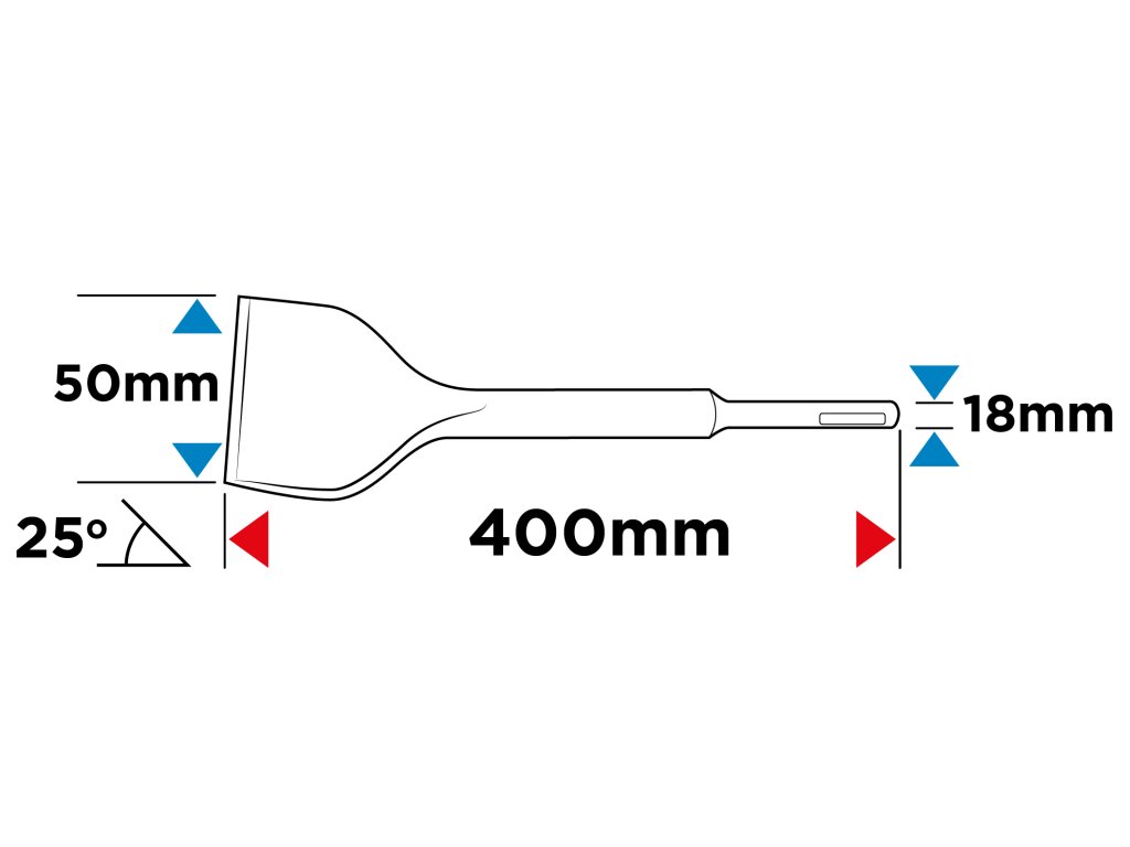 Sekáč SDS Max, šírka 50 mm, priemer stopky 18 mm, dĺžka 400 mm, uhol 25 stupňov