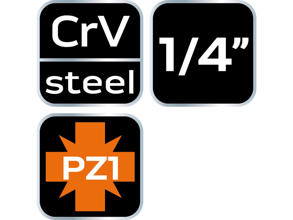Skrutkovací bit PZ1 na 1/4" nástrčke, dlhý, 87 mm, CrV oceľ