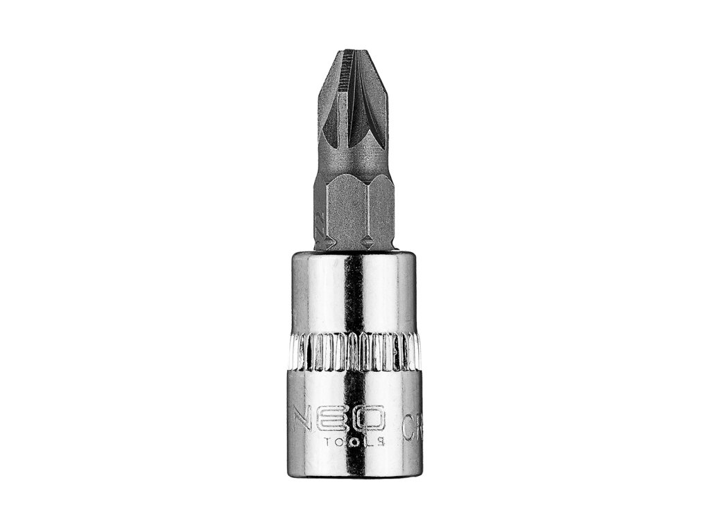 Skrutkovací bit PZ2 na ?" zásuvke, krátky, 37 mm 10-320 od spoločnosti NEO TOOLS je bit PZ2 na ?" zásuvke s celkovou dĺžkou 37 mm a dĺžkou pracovnej časti 18 mm. Je vyrobený z vysokokvalitnej chróm-vanádiovej ocele, čo zaručuje dlhú životnosť výrobku. Používa sa predovšetkým na výmenu poškodených a stratených súčastí súpravy. Odporúča sa pre profesionálov a domácich majstrov. K dispozícii v mnohých variantoch.