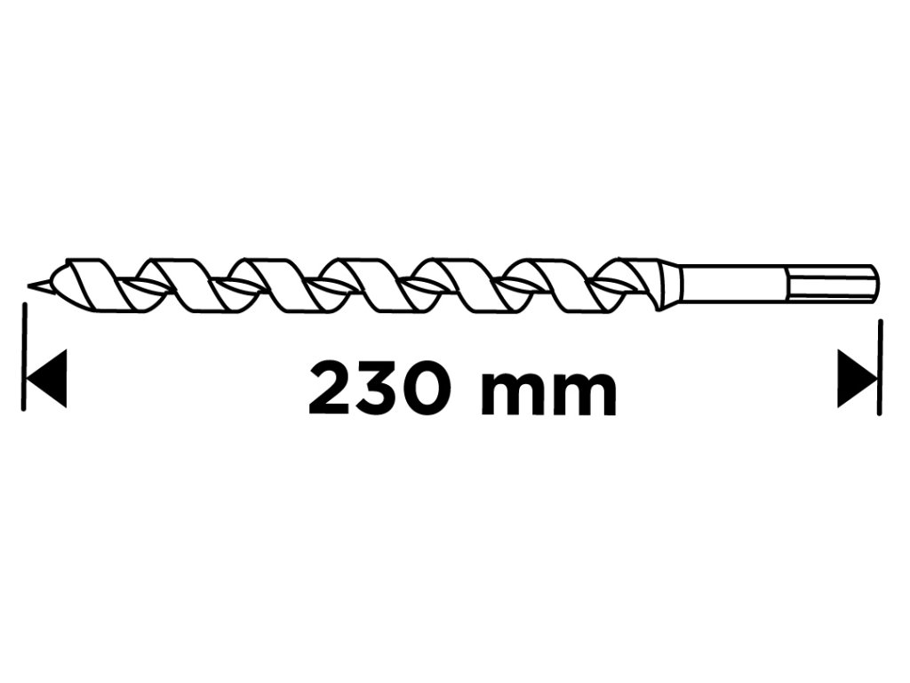 Špirálový vrták do dreva so šesťhrannou stopkou, priemer 10 mm, dĺžka 230 mm, max. otáčky 1500 ot/min, použitie: drevo, preglejka.