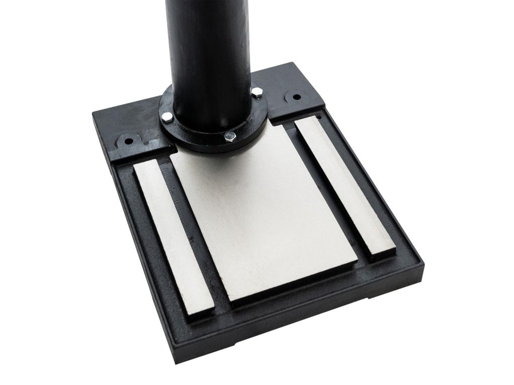 - Pevná konštrukcia: Stĺp s priemerom 92 mm zabezpečuje stabilitu počas práce a masívna základňa (470 x 360 mm) garantuje bezpečnosť použitia a istotu počas intenzívnych operácií.