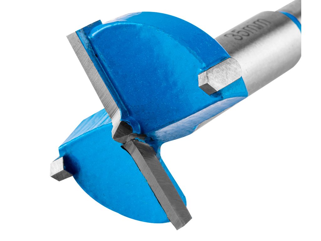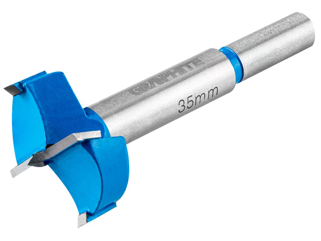 Montážna súprava závesov, šablóna + vrták 35 mm 57H002 od GRAPHITE je nevyhnutným produktom v každej stolárskej dielni a dielni pre domácich majstrov. Pozostáva z vysokokvalitného vrtáka s priemerom 35 mm a geometriou vhodnou na vytváranie priehlbín pre závesy plechoviek. Sada obsahuje aj plastovú šablónu na presné vymedzenie otvorov a upevňovacích prvkov. Výrobok je určený na všetky druhy mäkkého dreva a drevotrieskových dosiek potiahnutých plastom.