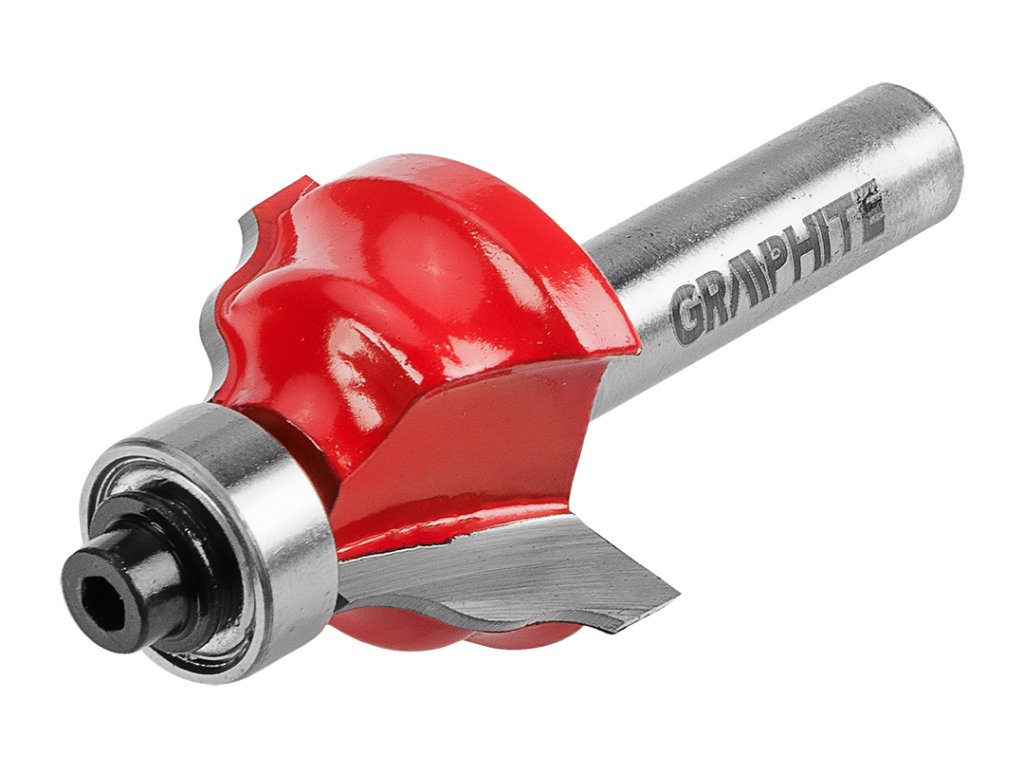 Ramenná fréza s ložiskom, dekoratívna, HM, 28,8 x 15,9 mm, stopka 8 mm GRAPHITE (ref. 56H239) určená na presné obrábanie napr. dreva, PVC, drevotriesky pomocou frézy. Hlava je vybavená reznými doštičkami zo spekaného karbidu. Fréza je vybavená ložiskom, ktoré uľahčuje vedenie frézy. Rozmery pracovnej časti: priemer 28,8 mm, výška 15,9 mm; priemer drieku 8 mm.