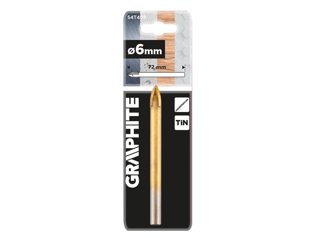 Univerzálny vrták 54T405 s TiN povlakom 6 mm od spoločnosti GRAPHITE je vrták s TiN povlakom a je vybavený valcovým skľučovadlom. Má priemer 6 mm a celkovú dĺžku 72 mm. Maximálna rýchlosť otáčania je 1000 otáčok za minútu. Univerzálny vrták GRAPHITE je určený na použitie do dreva, kovu, betónu, keramiky a plastov.