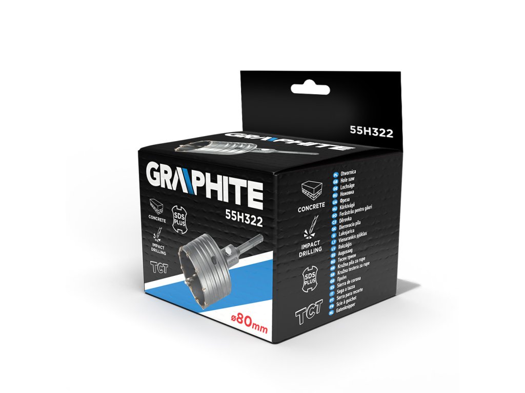 Píla na diery so šírkou 80 mm s adaptérom SDS+ a pilotným vrtákom 55H322 od spoločnosti GRAPHITE sa vyznačuje priemerom píly na diery 80 mm, výškou 72 mm a hĺbkou vŕtania 50 mm. Je vybavená 10 widiami so šírkou 2,2 mm. Vnútorný priemer je 74 mm a parametre fi vrtáka sú 8 x 110 mm. Dĺžka celej súpravy je 163 mm. Píla na diery značky GRAPHITE sa ponúka v súprave s adaptérom SDS+ a pilotným vrtákom. Má možnosť vŕtania s príklepom a je určená aj na vŕtanie otvorov do betónu a tehál. Umožňuje prípravu otvorov pre inštalačné krabice. Jemnozrnné karbidové čepele so zvýšenou odolnosťou proti opotrebovaniu predlžujú životnosť nástroja. Píla na diery sa osvedčí v profesiách stavbárov, domácich majstrov a elektrikárov.