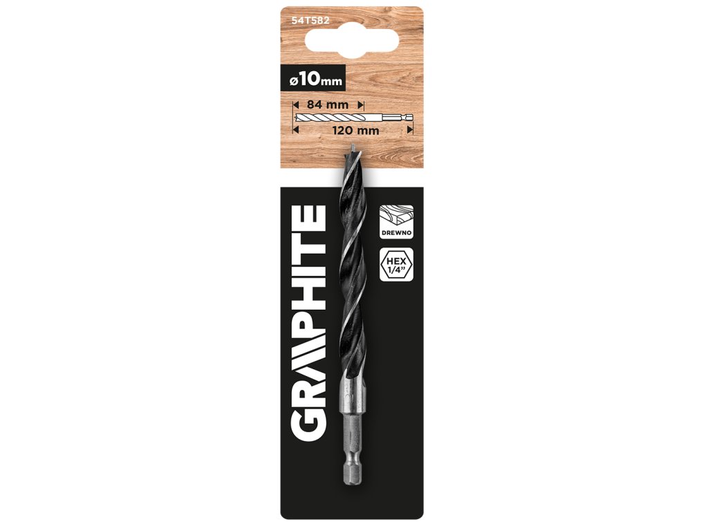 Vrták do dreva Hex 10,0 mm 54T582 od spoločnosti GRAPHITE je vrták určený na prácu s drevom a preglejkou a má stopku HEX. Vyznačuje sa priemerom 10 mm a dĺžkou 120 mm. Je vhodný na úlohy s maximálnymi otáčkami 1500 ot/min. Dobre sa uplatní pri mnohých domácich prácach.