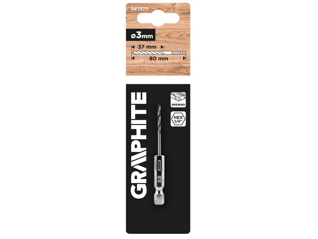 Vrták do dreva Hex 3,0 mm 54T577 od spoločnosti GRAPHITE je vrták určený na prácu s drevom a preglejkou a má stopku HEX. Vyznačuje sa priemerom 3 mm a dĺžkou 80 mm. Je prispôsobený na úlohy s maximálnymi otáčkami 2800 ot/min. Dobre sa uplatní pri mnohých domácich prácach.