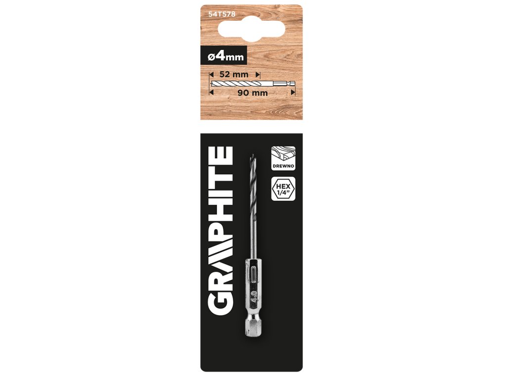 Vrták do dreva Hex 4,0 mm 54T578 od spoločnosti GRAPHITE je vrták určený na prácu s drevom a preglejkou a má stopku HEX. Vyznačuje sa priemerom 4 mm a dĺžkou 90 mm. Je prispôsobený na úlohy s maximálnymi otáčkami 2800 ot/min. Dobre sa uplatní pri mnohých domácich prácach.