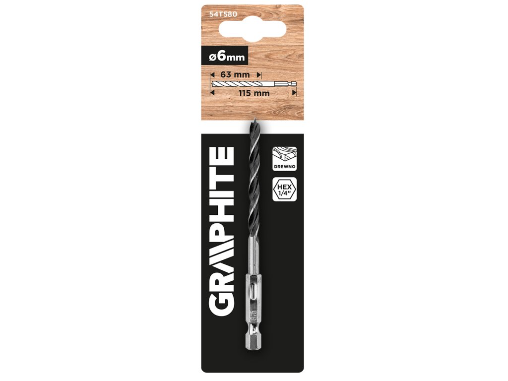 Šesťhranný vrták do dreva 6,0 mm 54T580 od spoločnosti GRAPHITE je vrták určený na prácu s drevom a preglejkou a má skľučovadlo HEX. Vyznačuje sa priemerom 6 mm a dĺžkou 115 mm. Je vhodný na úlohy s maximálnymi otáčkami 2500 ot/min. Dobre sa uplatní pri mnohých domácich prácach.