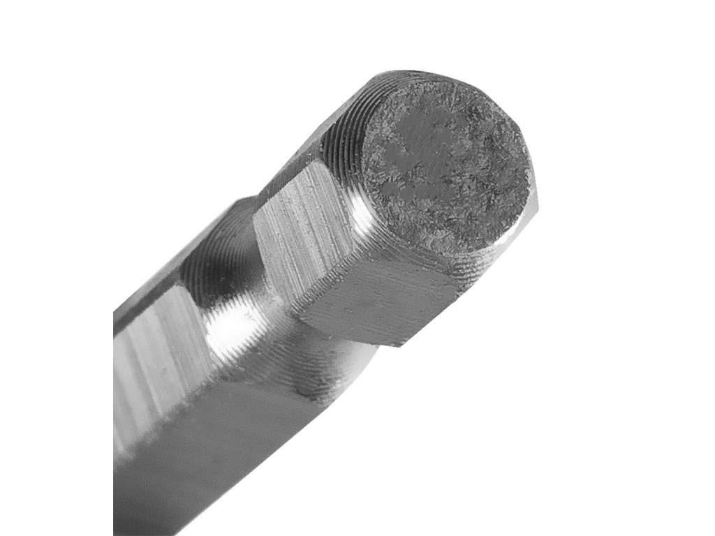 Priemer šesťhranného vrtáka do kovu 13,0 mm, celková dĺžka 151 mm, pracovná dĺžka 101 mm. Norma DIN 338, uhol hrotu 118 stupňov.