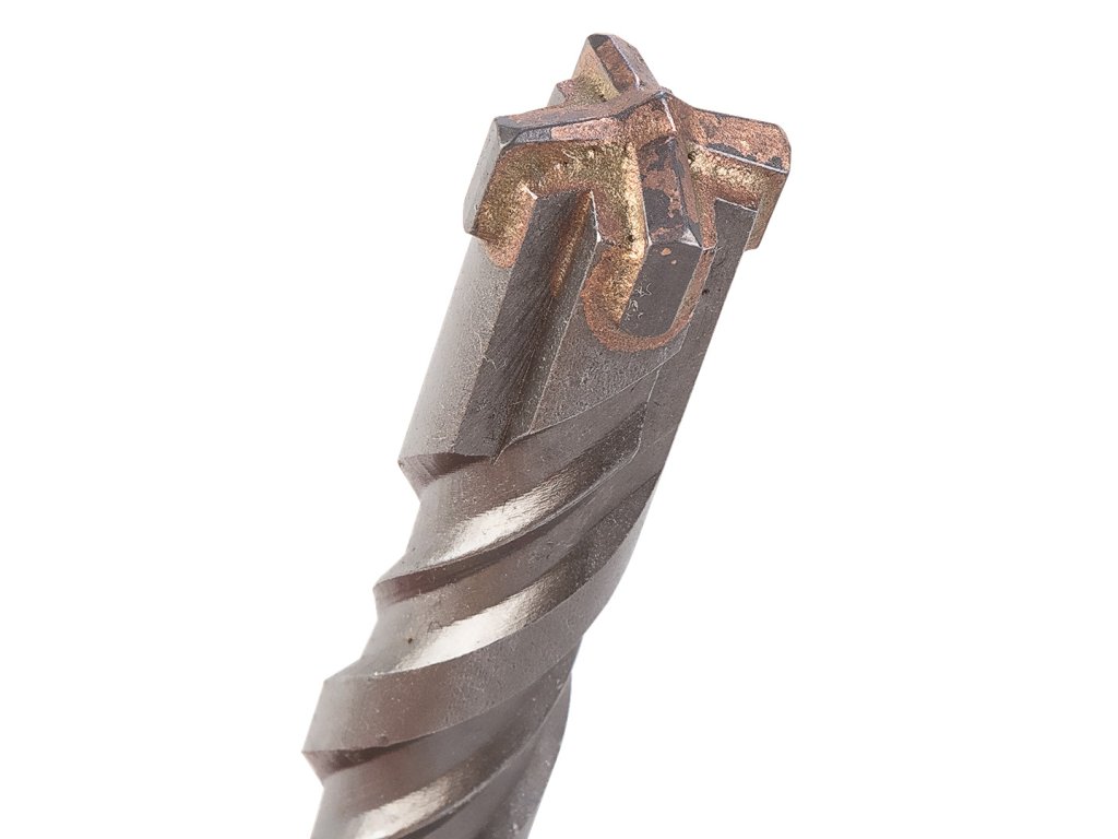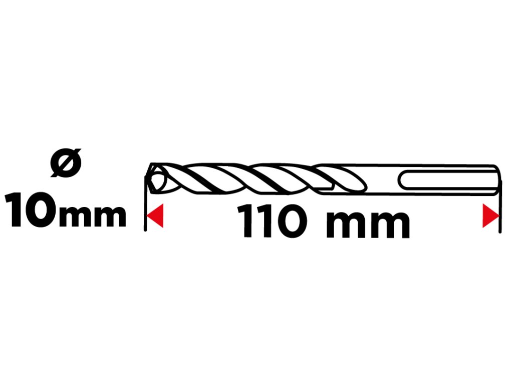 Vrták do železobetónu, stopka SDS Plus, priemer 10 mm, celková dĺžka 110 mm, vidlica QUATRO (štyri krížové vidlice), dvojitá špirála, pracovná dĺžka vrtáka 40 mm.