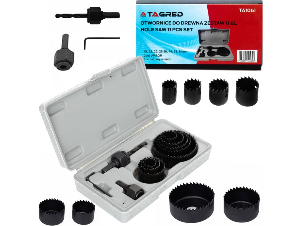 Ideálna sada na vyrezávanie otvorov do dreva, sadrokartónových dosiek a lepenky. Nezastupiteľný pri dokončovacích, inštalačných a elektrických prácach. Vŕtačky sa používajú na vyrezávanie otvorov s veľkým priemerom iba po obvode vyrezávaného otvoru. Tvar vrtáka má formu valca zakončeného ostrými rezacími zubami. Vŕtačky sú vyrobené z tvrdenej nástrojovej ocele.