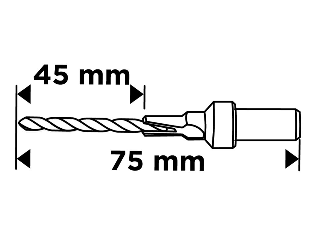 Potvrdzovací vrták s priemerom 4/6 mm, celková dĺžka 75 mm, pracovná dĺžka 45 mm, valcová stopka,