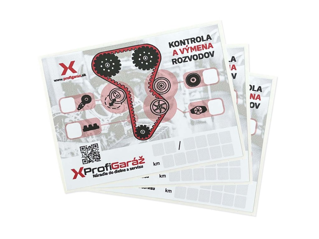 Praktická samolepka pre autoservis, ktorá uľahčí sledovanie servisných intervalov výmeny rozvodov. Mechanik na ňu jasne vyznačí dátum poslednej výmeny a stav kilometrov pri výmene. Všetko na jednom mieste, pre maximálny prehľad a profesionálny dojem pri odovzdávaní vozidla zákazníkovi.