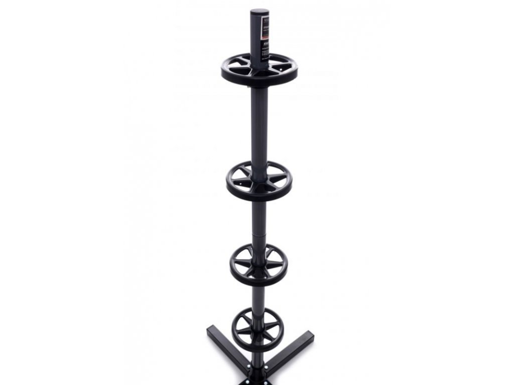 Slúži na bezpečné skladovanie sezónnych pneumatík, vďaka čomu ušetríte miesto v garáži. Stojan je vyrobený z vysoko kvalitnej nehrdzavejúcej ocele. Stojan na sadu automobilových kolies zabraňuje deformácii pneumatík a ich úniku vzduchu, tiež sa veľmi ľahko inštaluje a používa. Na stojane pohodlne a bez obáv z poškodenia uskladníte 4 kolesá osobného automobilu.