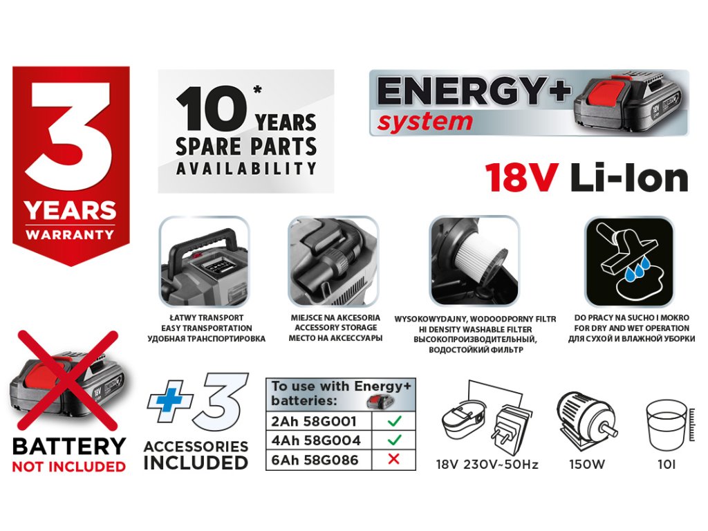 Energy+ 18V Li-Ion dielenský vysávač, 10 l 58GE105