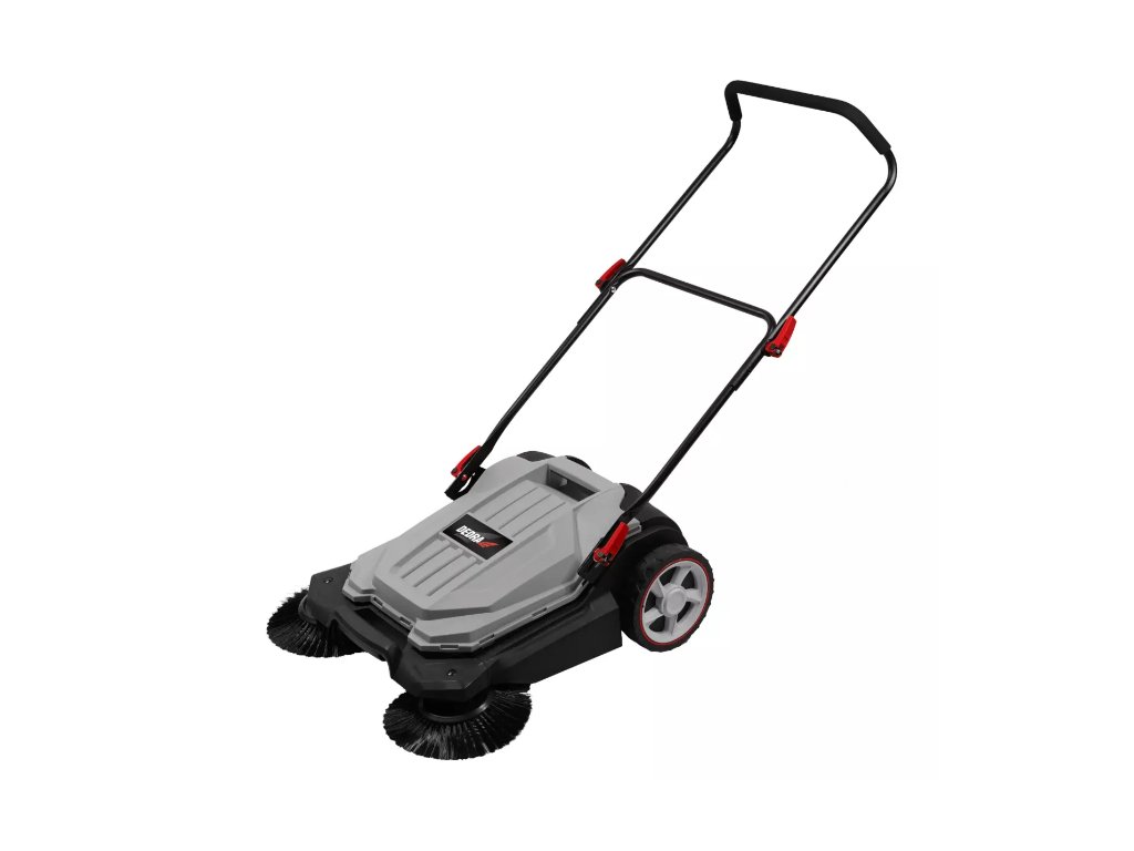 Manuálny mechanický systém zaručuje jeho praktickosť, nepotrebujete predĺžovacie káble ani nabíjanie akumulátorov. Pohyb koliesok dopredu roztáča kefy. Rukoväť je nastaviteľná, čo uľahčuje prácu a nemusíte zaťažovať chrbát ako pri bežnom zametaní. Navyše mäkká povrchová úprava zvyšuje pohodlie pri práci. Zabudovaný zásobník s objemom 18 litrov poskytne dostatok miesta a predĺži čas, ktorý je potrebný na jeho vyprázdnenie. Hladký pohyb zabezpečujú 4 kolieska, zadné s priemerom 200mm zabezpečujú stabilitu a istú ovládateľnosť, zatiaľ čo menšie predné kolesá s priemerom 50mm zlepšujú manévrovateľnosť.