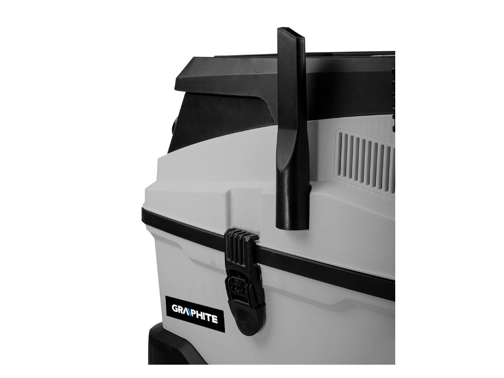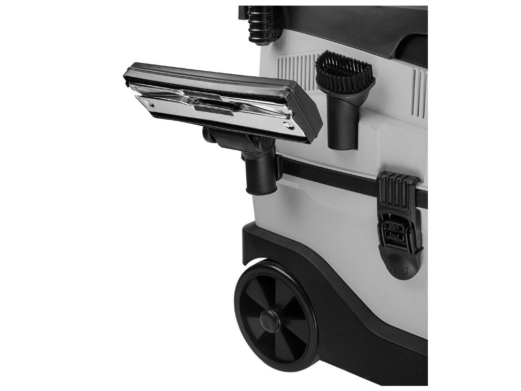 Vysávač je schopný pracovať za mokra aj sucha. Okrem nasávania je vybavený aj funkciou fúkania. Ďalšou výhodou je praktická zásuvka pre elektrické náradie (max 200W), takže nepotrebujete kopec predĺžovacích káblov, môžete tak vŕtať a zároveň odpad po vŕtaní vysať. Vysávač je vybavený HEPA filtrom, ktorý je pripevnený k základni pod motorom. Filter je možné umývať pod tečúcou vodou a opakovane ho používať.