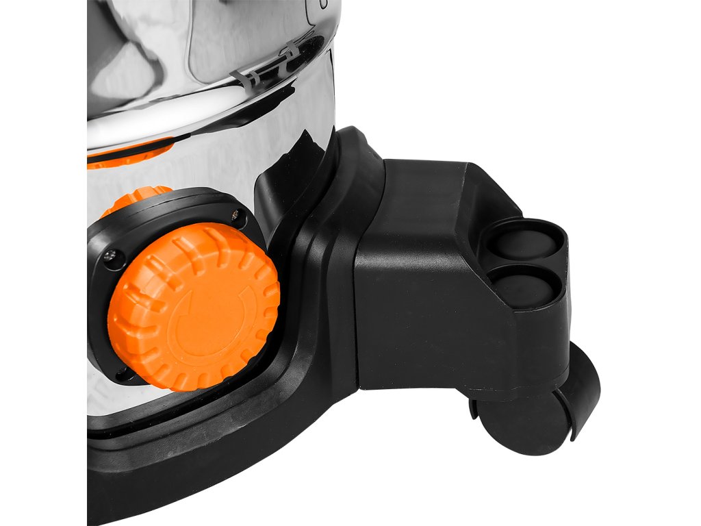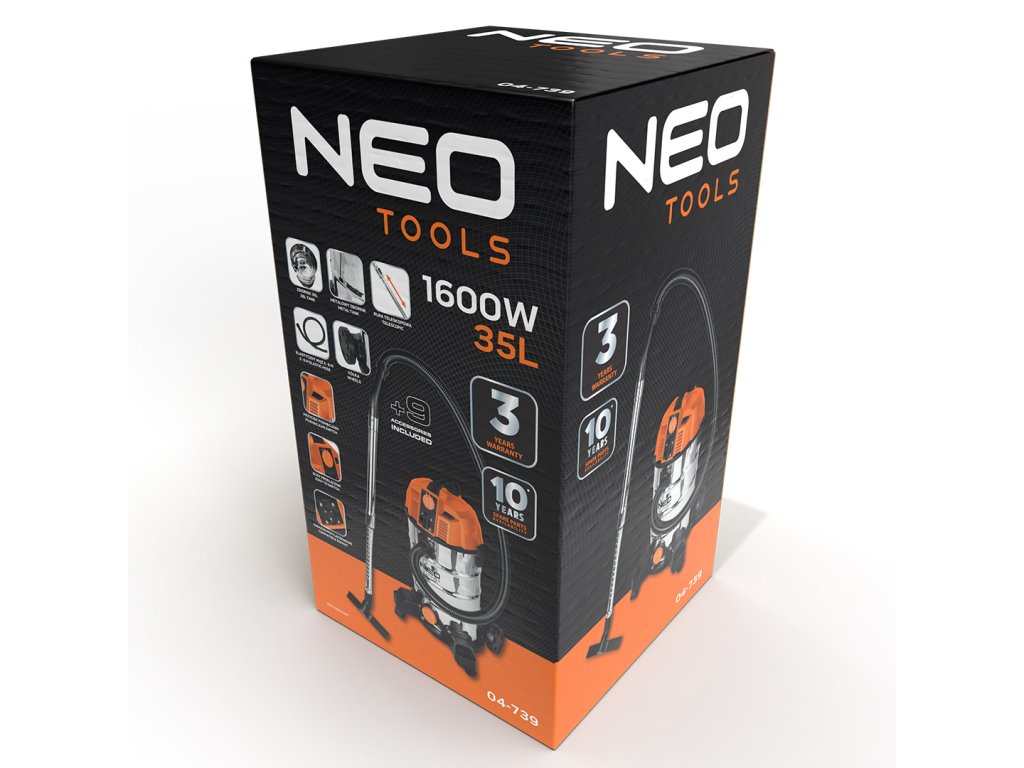 Priemyselný vysávač 1600 W, 35 l, HEPA filter 04-739 od NEO TOOLS je viacúčelový vysávač vhodný okrem iného na použitie s brúskou na omietky. Vyznačuje sa výkonom 1600 W a objemom 35 litrov. Možno ho používať na mokré aj suché použitie. Na kryte má prídavnú automatickú zásuvku s maximálnym príkonom pripojenia 1800 W. Pracuje pri napätí 230 V ~ 50 Hz. Vyznačuje sa sacím výkonom ? 18 kPa, ako aj robustnou nádržou z nehrdzavejúcej ocele. Má saciu hadicu s priemerom 35 mm a dĺžkou 1,5 až 4,5 m. Na druhej strane dĺžka napájacieho kábla je až 4 m. Priemyselný vysávač od spoločnosti NEO TOOLS je vybavený funkciou dúchadla, veľkým spínačom, funkciou trasenia, ako aj možnosťou usporiadania hadicových prvkov na kryte. Má triedu ochrany I pre zariadenie, čo dokazuje jeho bezpečnosť. Ponúka sa s papierovým vreckom na zber prachu, penovým filtrom, štrbinovou hubicou, 3 predlžovacími trubicami 35 mm, suchou mokrou kefou, HEPA filtrom, Dacron filtrom a redukčnou koncovkou. Dobre poslúži doma aj v dielni, garáži alebo pri renovácii.