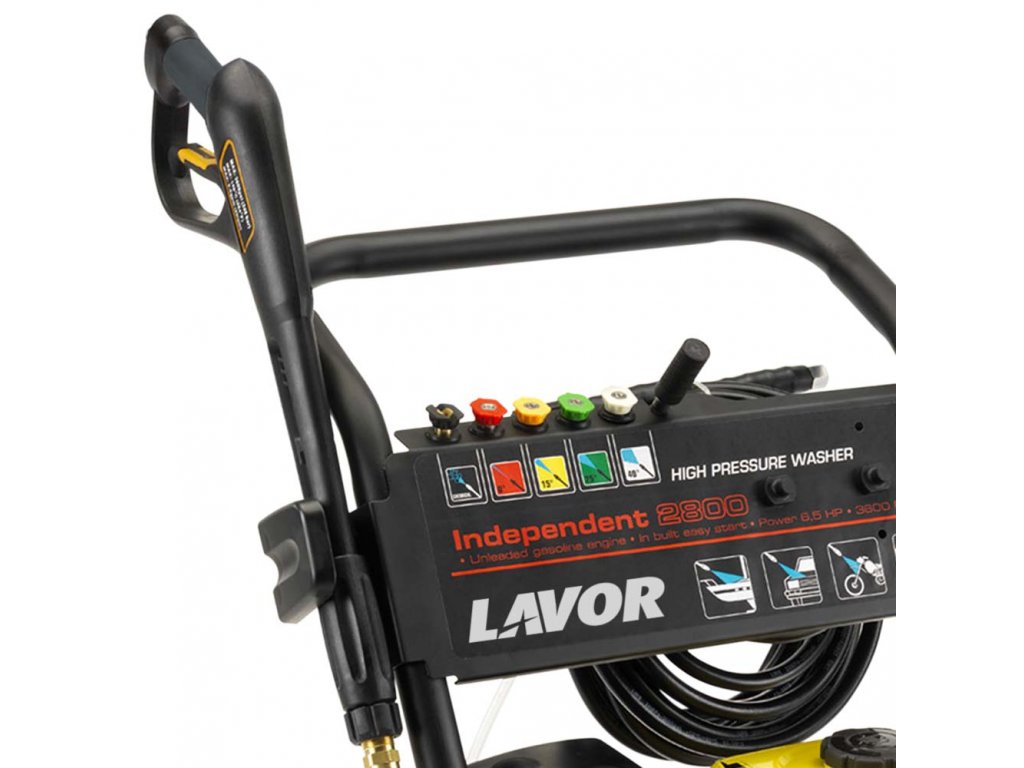 Vysokotlakový čistič poháňaný benzínovým motorom s výkonom 6,5 hp, maximálnym tlakom až 200 barov a prietok max. 690 litrov za hodinu.