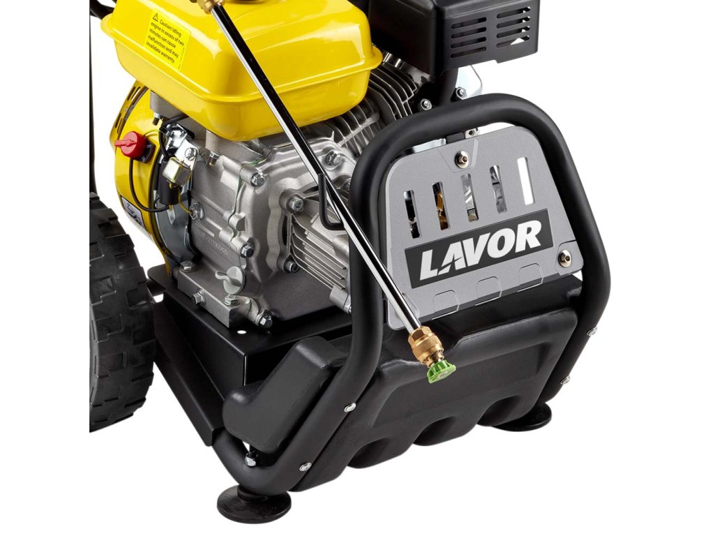 Vysokotlakový čistič poháňaný benzínovým motorom s výkonom 6,5 hp, maximálnym tlakom až 210 barov a prietok max. 690 litrov za hodinu.