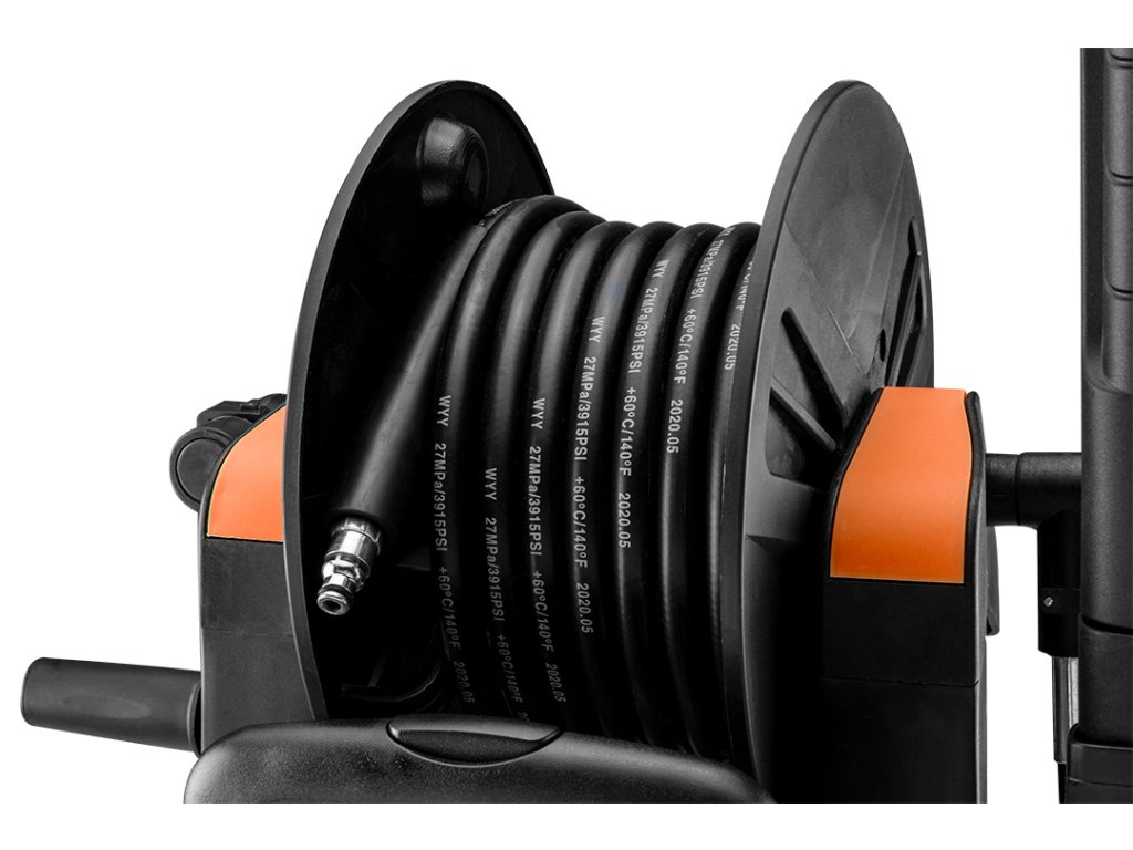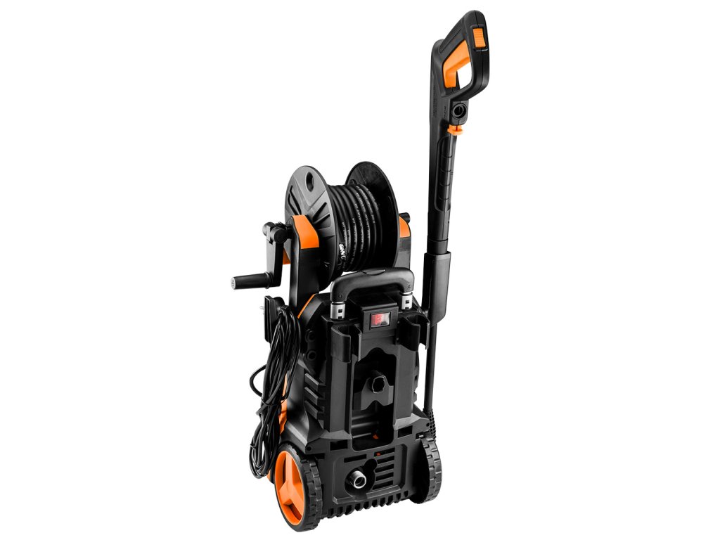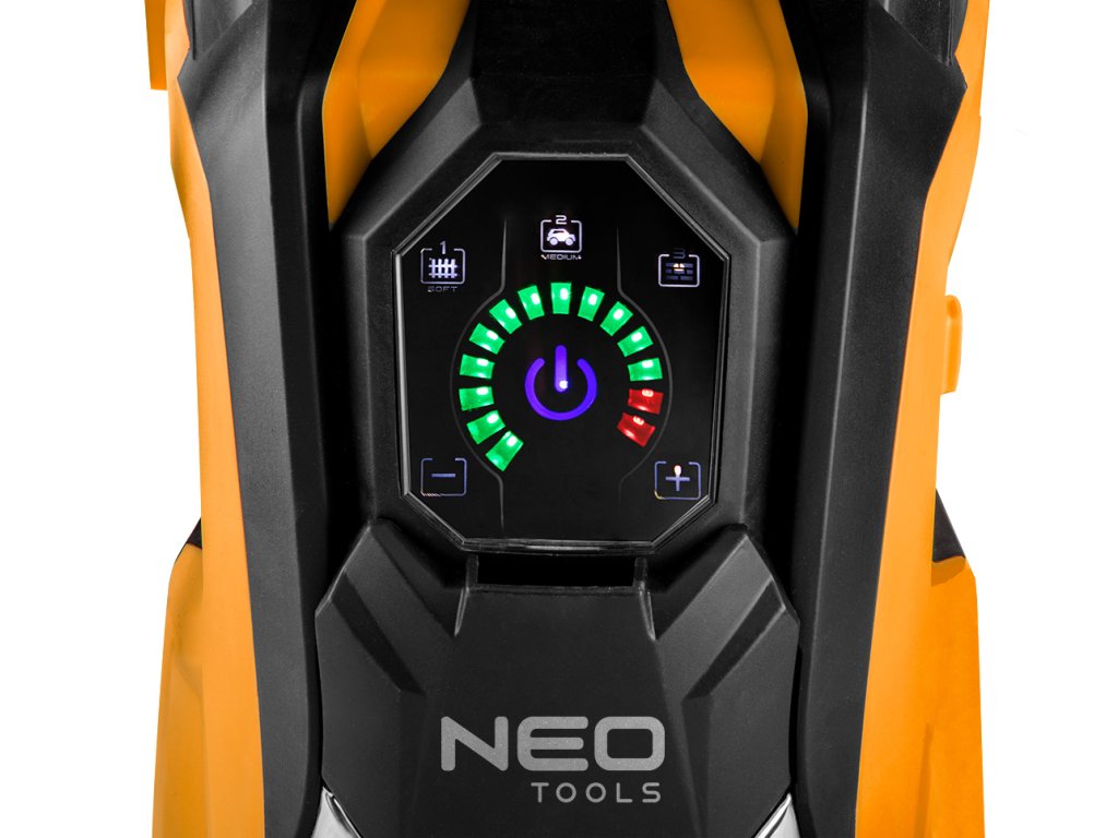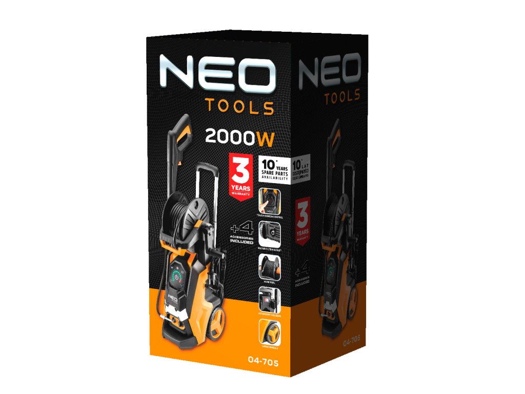 Tlaková umývačka 2000 W, tlak 100 barov (max. 150 barov) 04-705 od spoločnosti NEO je konkurenčné zariadenie, ktoré nájde uplatnenie v každej domácnosti, garáži, dielni alebo na záhrade. Vyznačuje sa maximálnym tlakom 150 barov a prietokom vody 6 l za minútu. Má dlhú, 5 metrovú vysokotlakovú hadicu na bubne, ktorá uľahčuje a urýchľuje prácu. Umývačka sa dodáva aj so súpravou príslušenstva vrátane nádržky na prací prostriedok, držiaka na vybavenie, kefy a prípojky na prívod vody s filtrom.