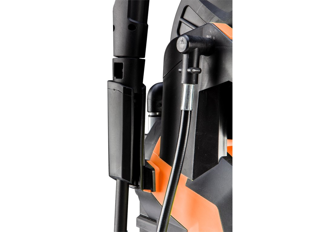 Tlaková umývačka 2000 W, hliníkové čerpadlo, pracovný tlak 100 bar, max. tlak 150 bar, prietok 6 l/min, max. teplota napájacej vody 40 °C, hmotnosť 10 kg, príslušenstvo: rukoväť pištole, kopija, kefa, nádržka na čistiaci prostriedok, 5 m vysokotlaková hadica na bubne, držiak zariadenia, prípojka na prívod vody s filtrom, rýchlospojka