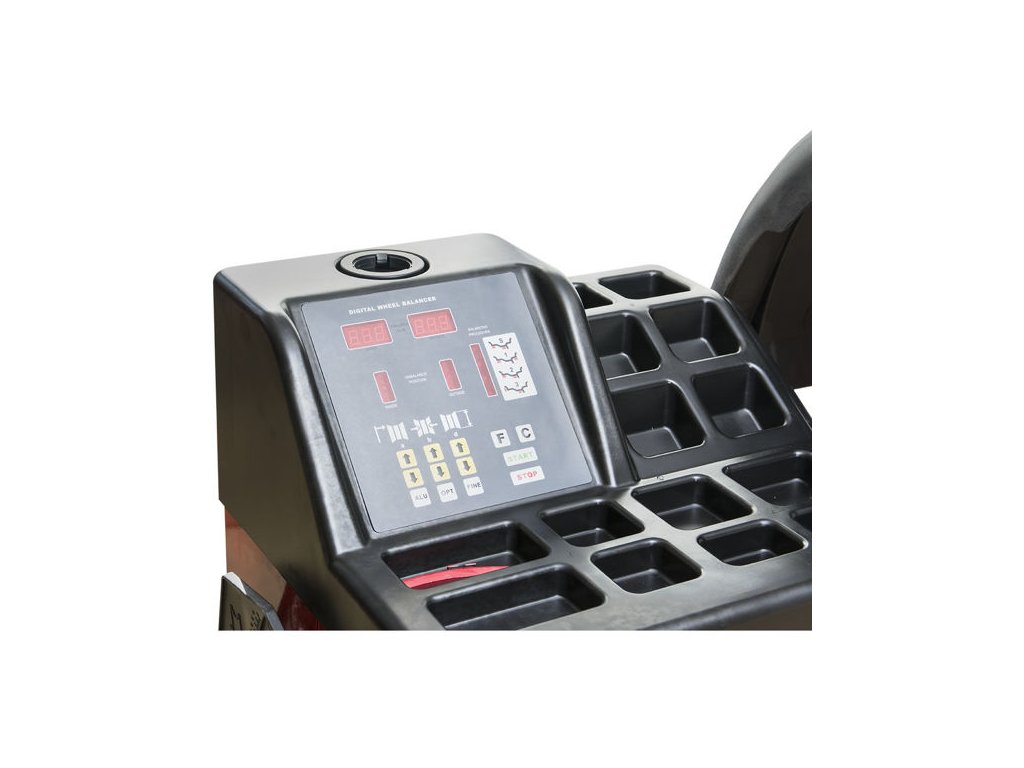 Vyvažovačka kolies W-200 je poloautomatická a založená na mikroprocesorovom ovládacom paneli s LED displejom.