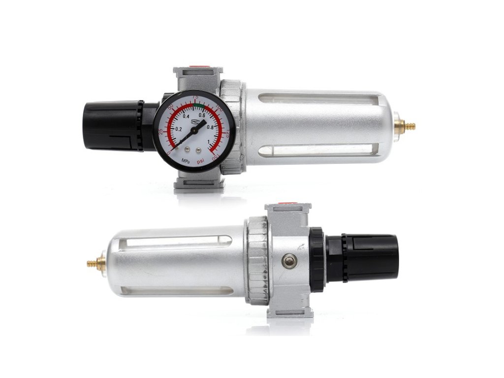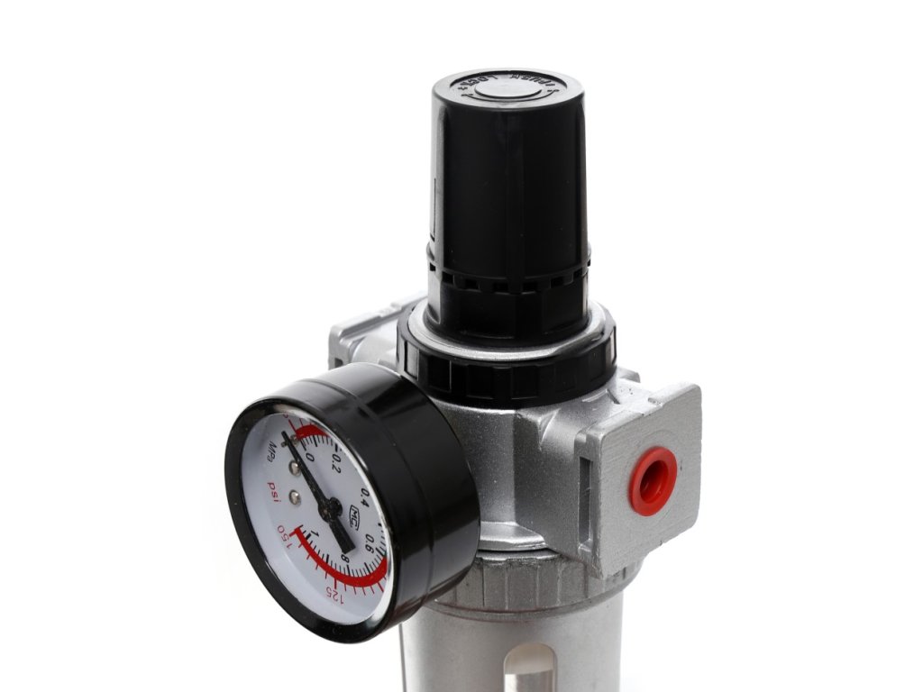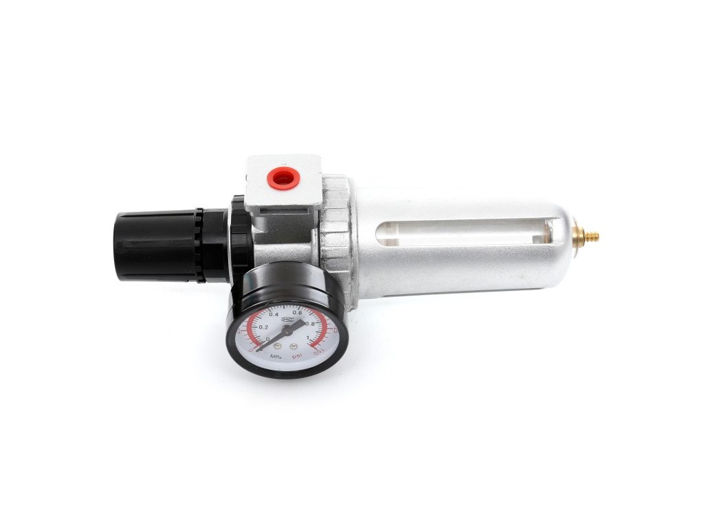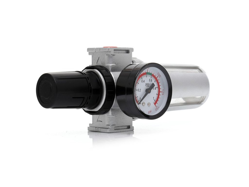 Redukčný ventil s odlučovačom pre kompresory. Znižuje tlak, umožňuje filtráciu vzduchu, čím zabraňuje poškodeniu pneumatických nástrojov. Zabraňuje kondenzácii vody v pneumatických vedeniach.